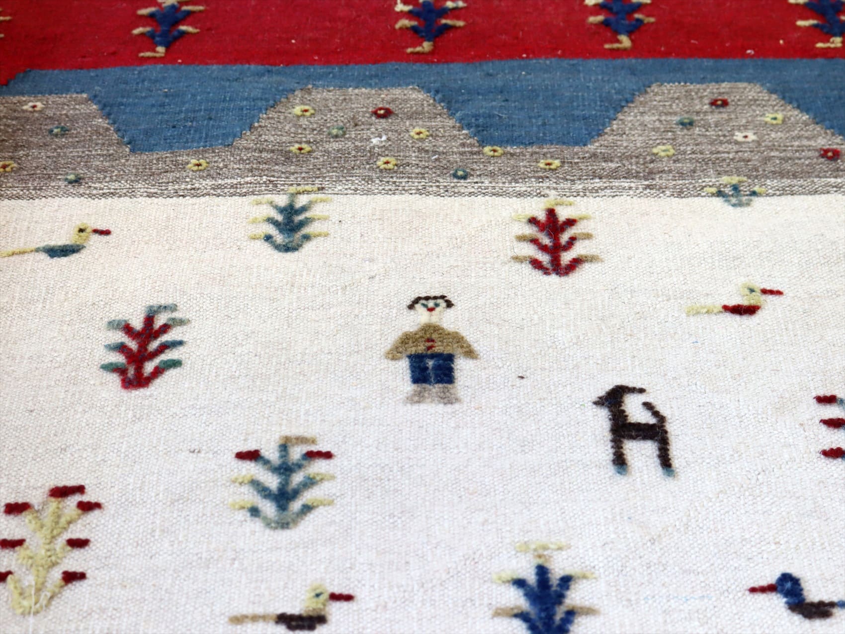 ギャッベキリム 遊牧民の織る風景のラグ144×95cm 樹々と動物