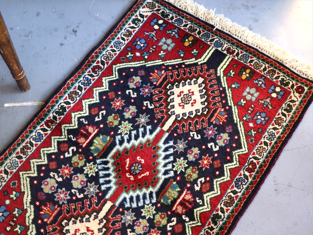 トライバルラグ・部族絨毯 ヤラメ Yalameh 97×62cm 変形の六角メダリオン ネイビー