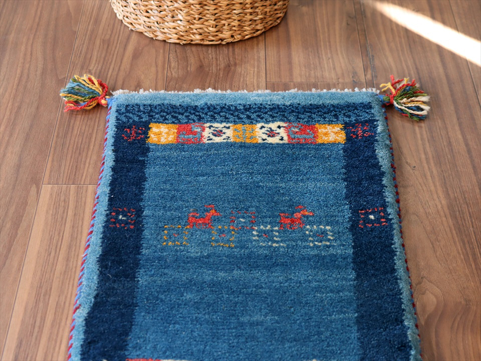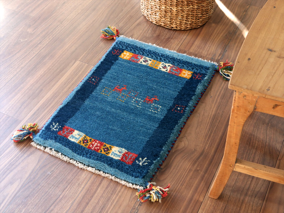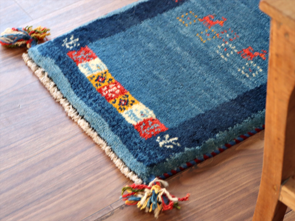ギャッベ イランの手織りラグ GABBEH59×40cm ブルー カラフルタイル