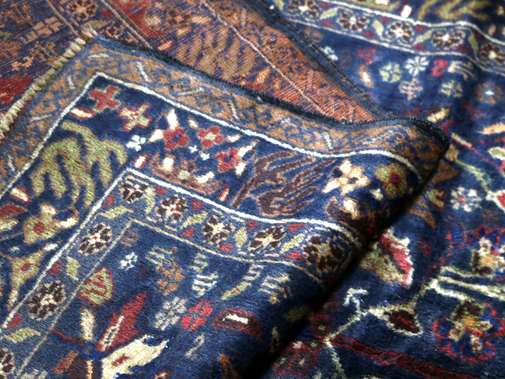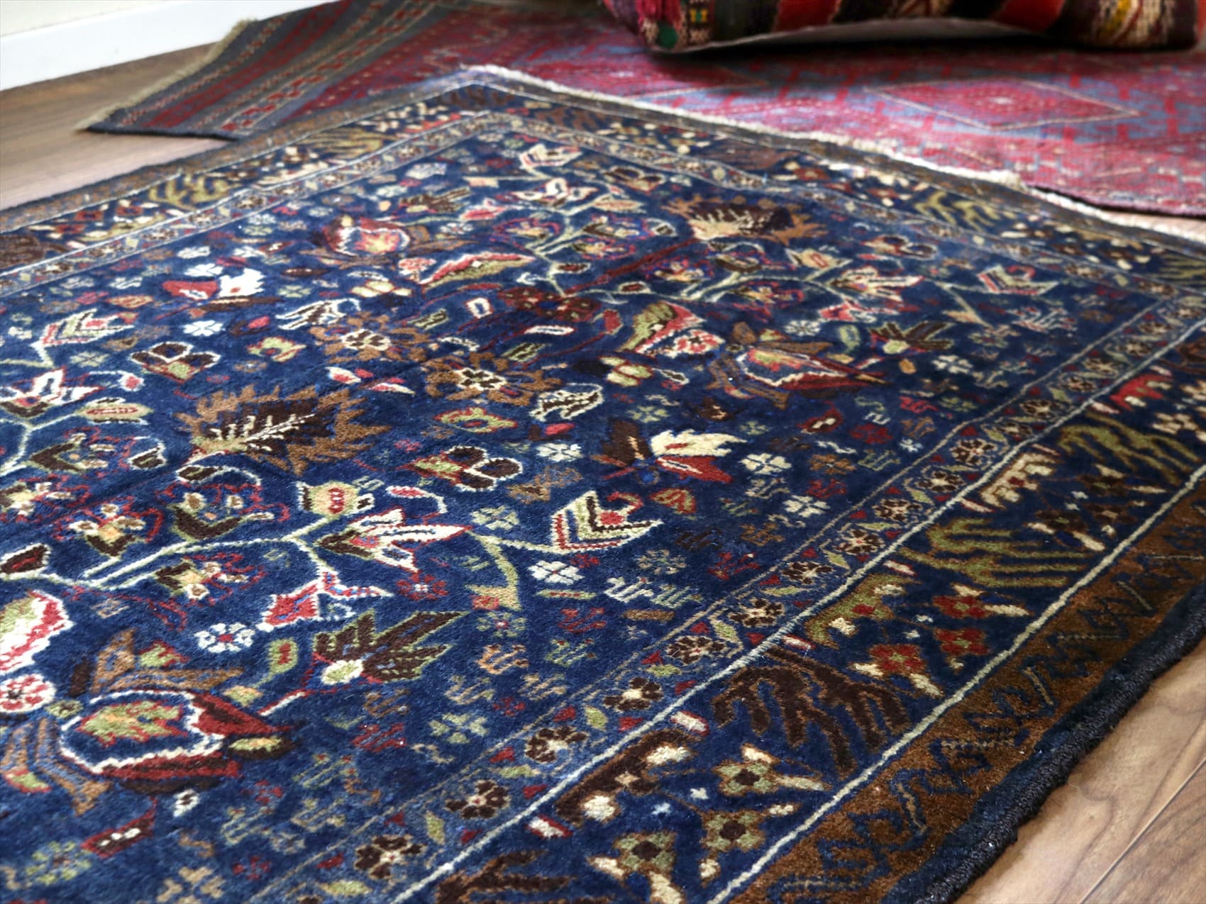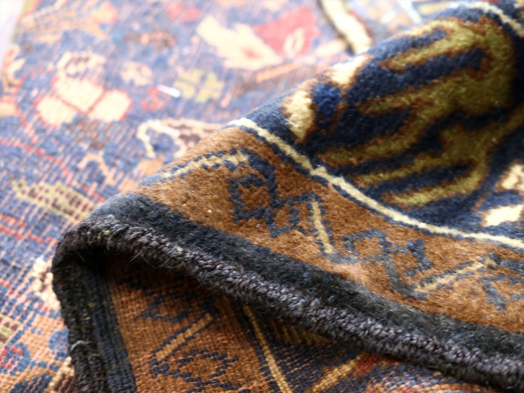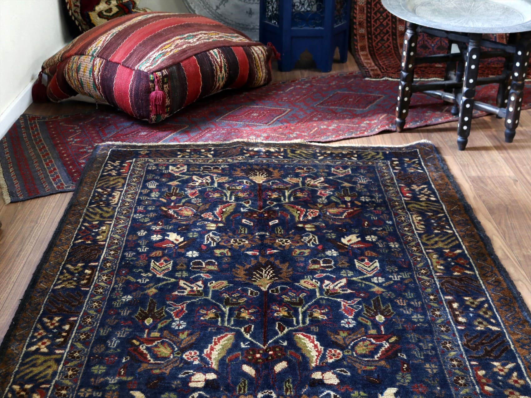 部族絨毯 トライバルラグ バルーチ197×112cm 濃紺 花のアラベスク