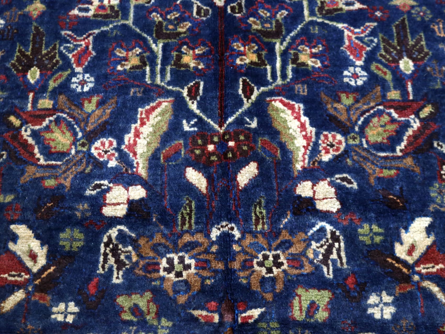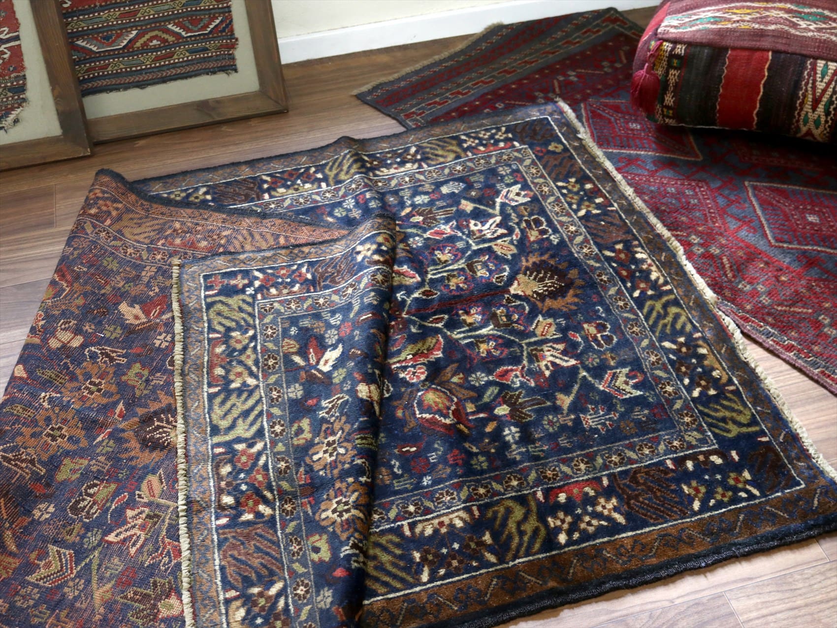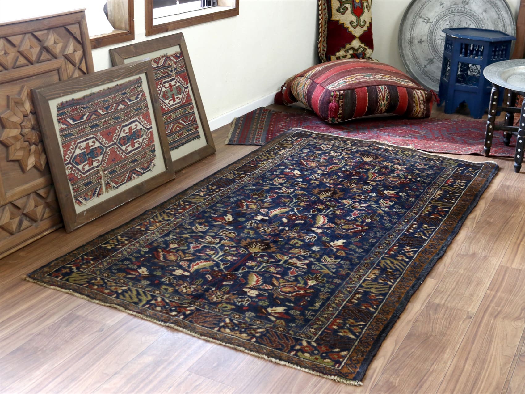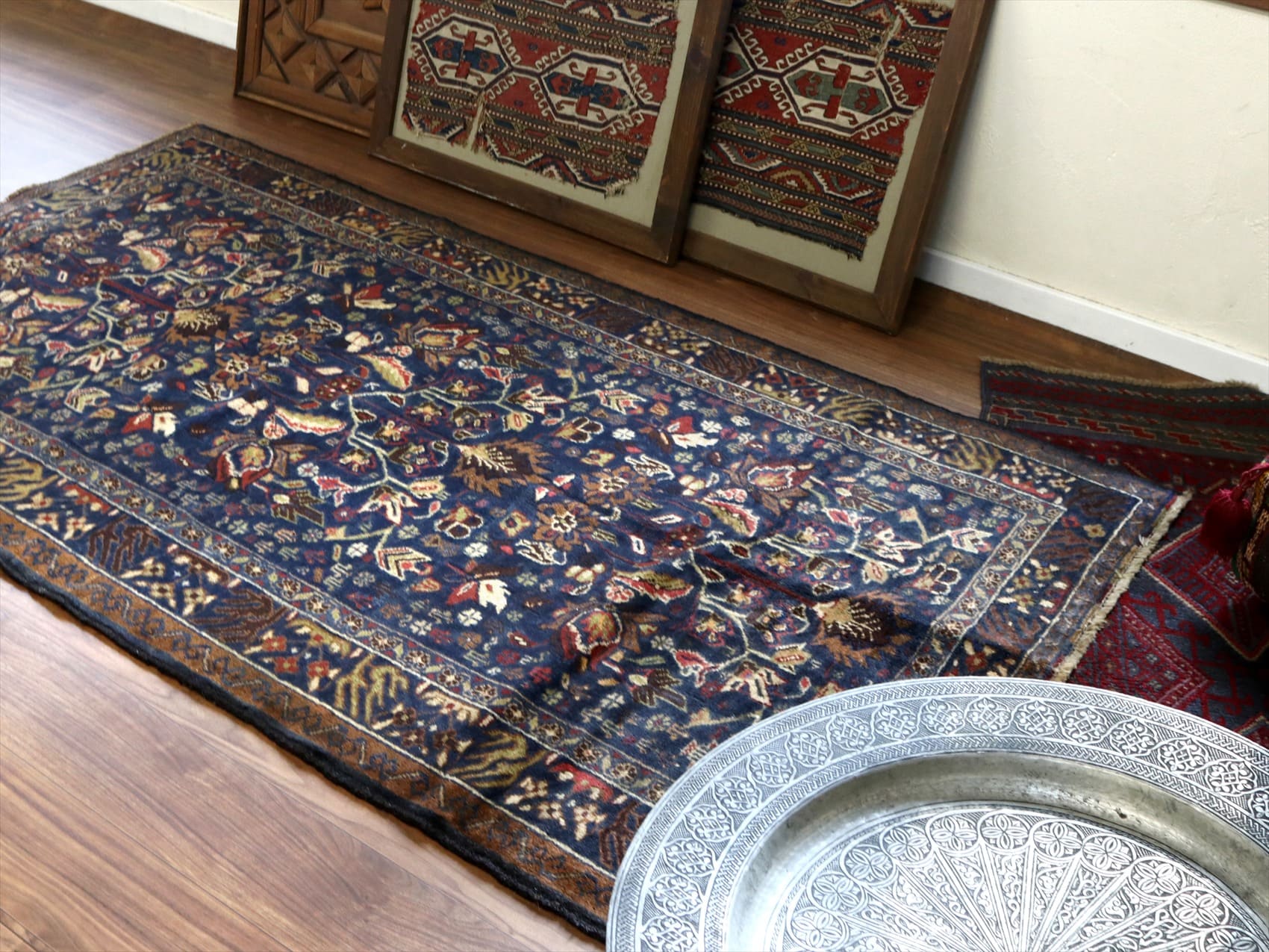 部族絨毯 トライバルラグ バルーチ197×112cm 濃紺 花のアラベスク