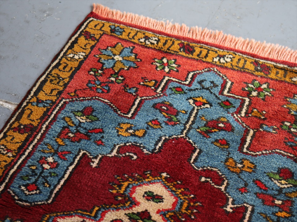 | 階段状のブルーのメダリオンが特徴のヤヒヤル地方のヤストゥク。同じ家庭から出た似ているラグが4枚入荷しています。 |