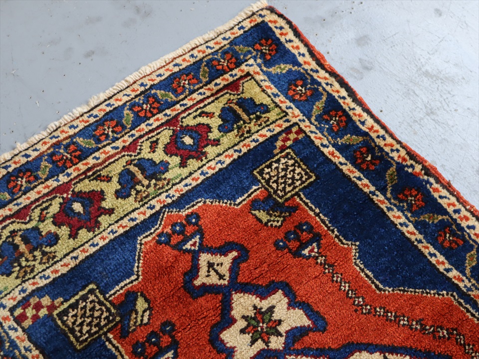 | アナトリア地方で、ヤストゥク(枕の意味)と呼ばれる細長いクッションとして使われていた袋状のじゅうたんのピース。現状では裏面はとってしまって、一枚のカーペットになっています。 |