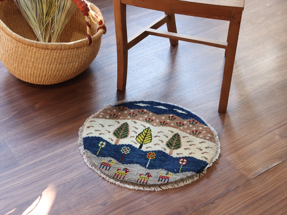 Key:ギャッベ, ギャベ, ラグ, 絨毯, イラン, シラーズ, ペルシャ, バザールギャッベ, 手織り, 一点もの, 円形, 丸