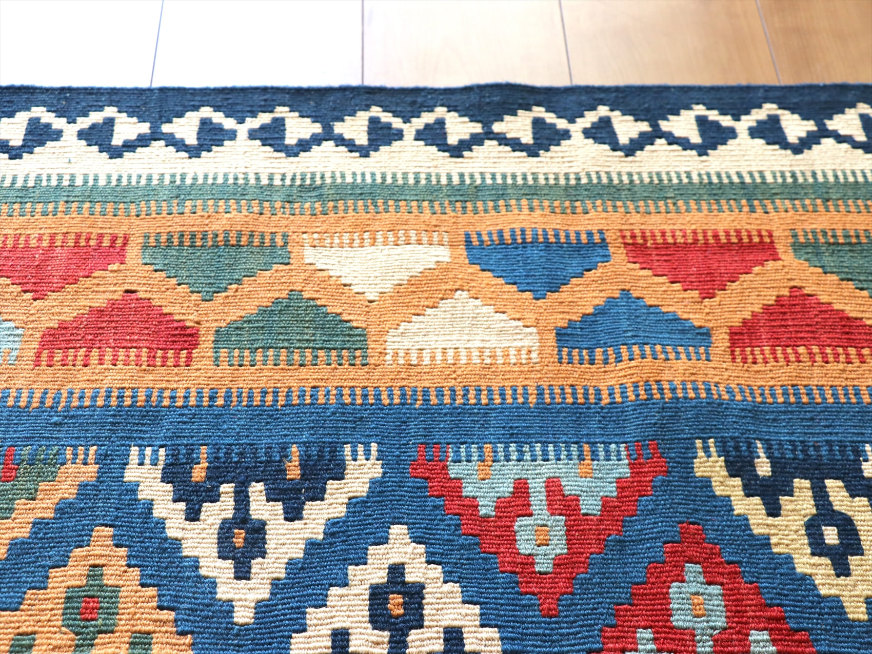 - シラーズキリム・カシュカイ族の手織りキリム 199x161cm 明るいいろ使いの幾何学モチーフ