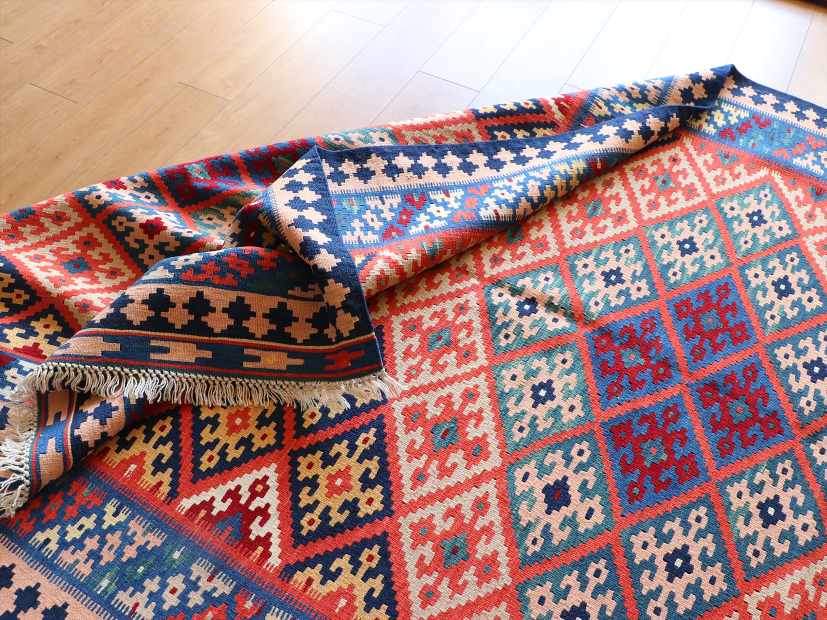 - シラーズキリム・カシュカイ族の手織りキリム 250x164cm 明るいいろ使いの幾何学モチーフ