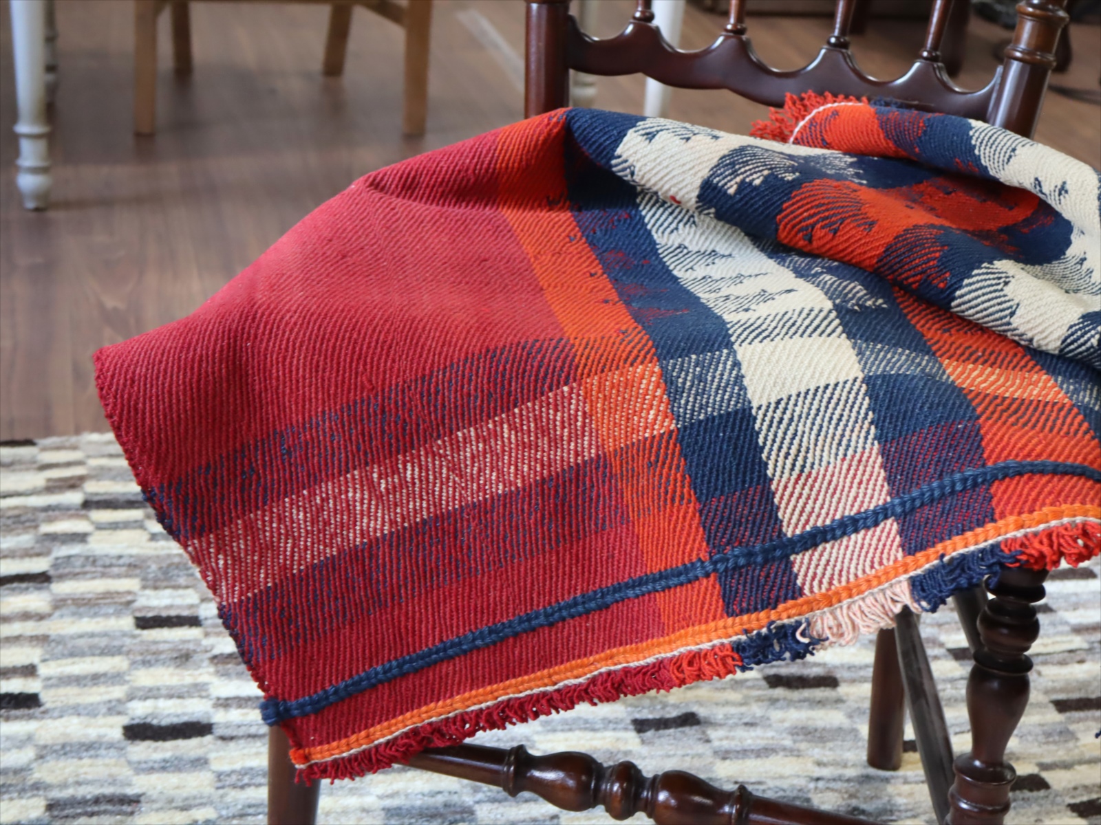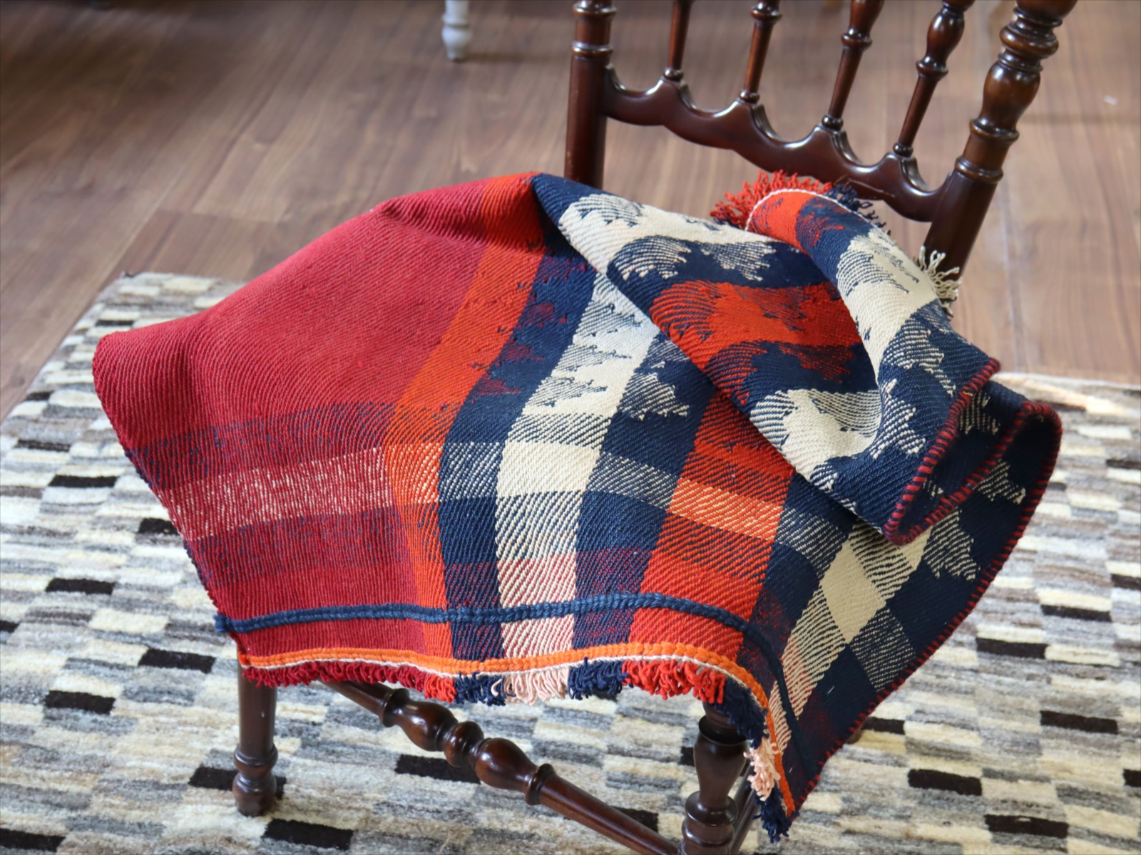 | カシュカイ族の織るキリムは一般的にトルコキリムより厚みがありがっちりとした質感です。織り地は厚みがあり、ぎゅっと目が詰まって、固くしっかりとしています。 |