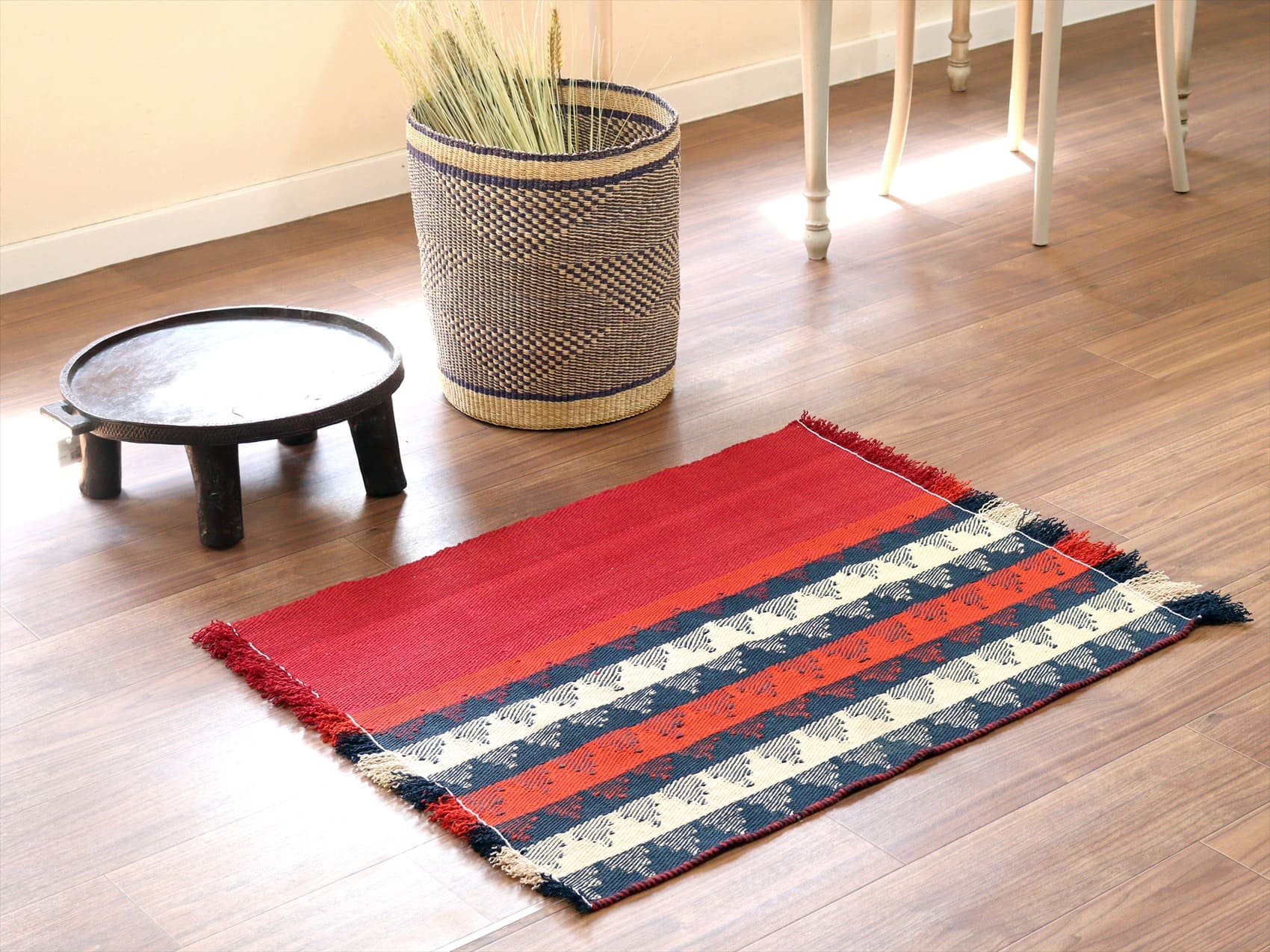 | お手入れについて | 普段のお手入れは、丁寧に掃除機をかけてホコリをとる程度で十分です。時々、お天気のよい日に、外に出して裏からはたいてホコリを出し、風を通してください。 ウール製品は湿気に弱いので乾燥を保つようお願いします。加湿器の当たる場所、結露などのある場所でのご使用は避けてください。 数年に一度は、専門の絨毯クリーニングでさっぱりと水洗いすることをおすすめいたします。 ■クリーニングについて |