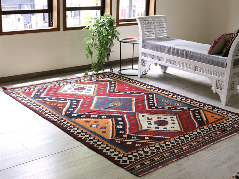 オールドキリム・ロリ族 カリヨラサイズ 233x160cm 3つのダイヤのメダリオン