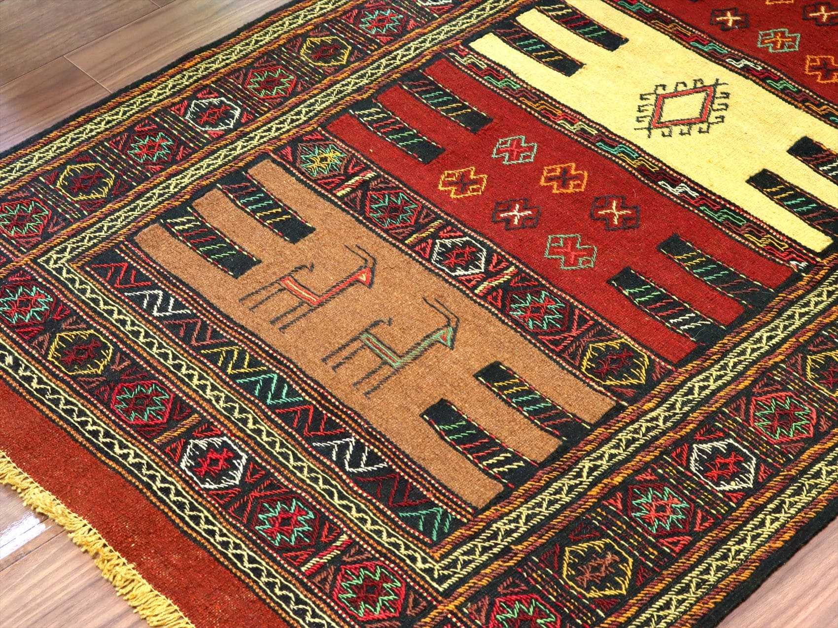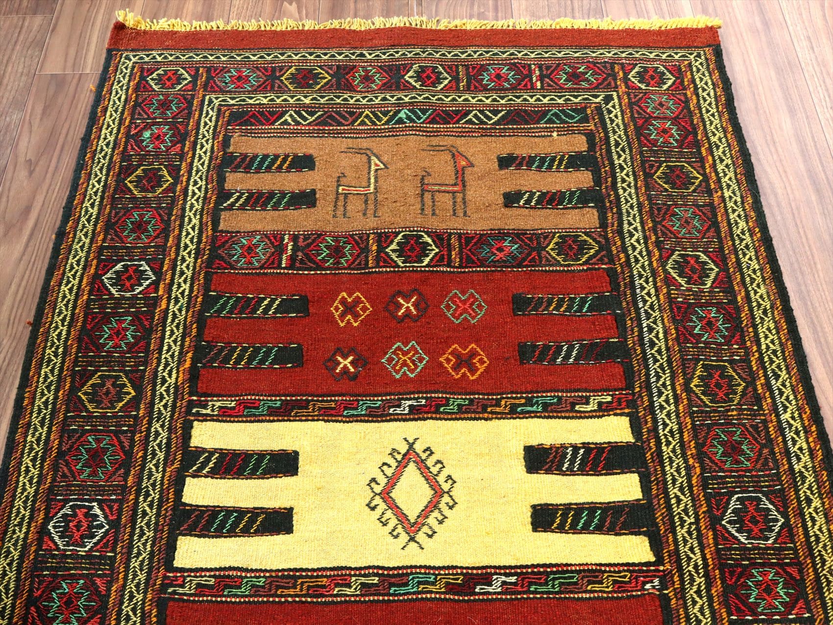 東イランの素朴な手織りキリム グチャン 176x99cm シカと幾何学模様