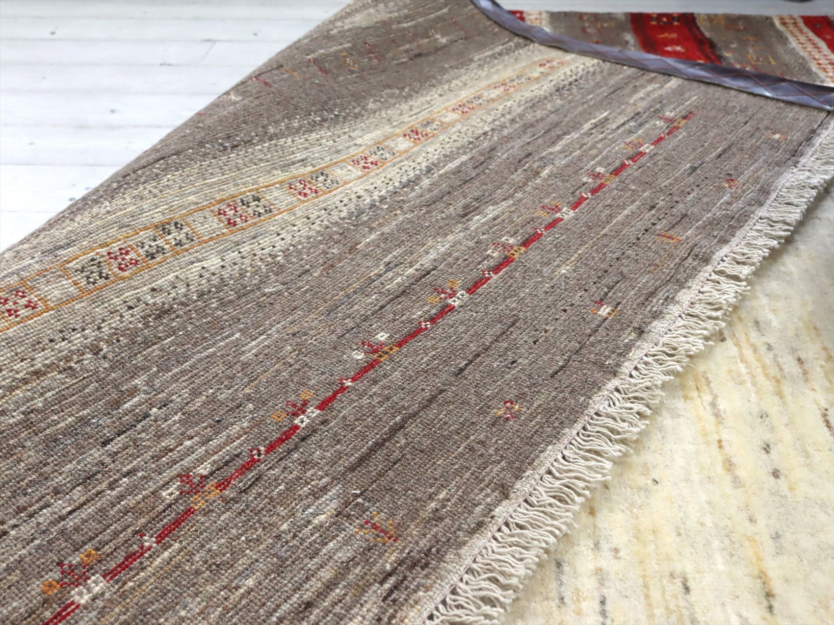 - ギャッベ リズバフト 細かな織り246×172cm ナチュラルアイボリー&ブラウン