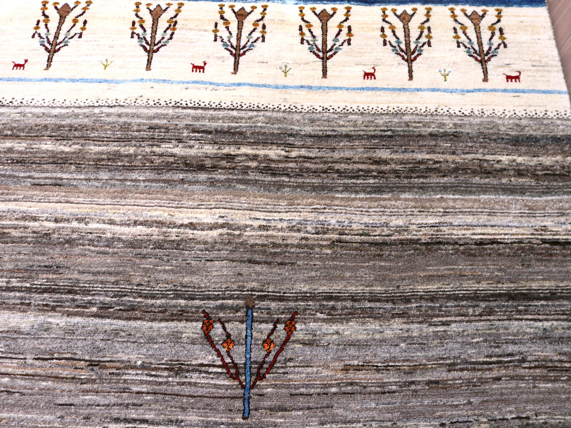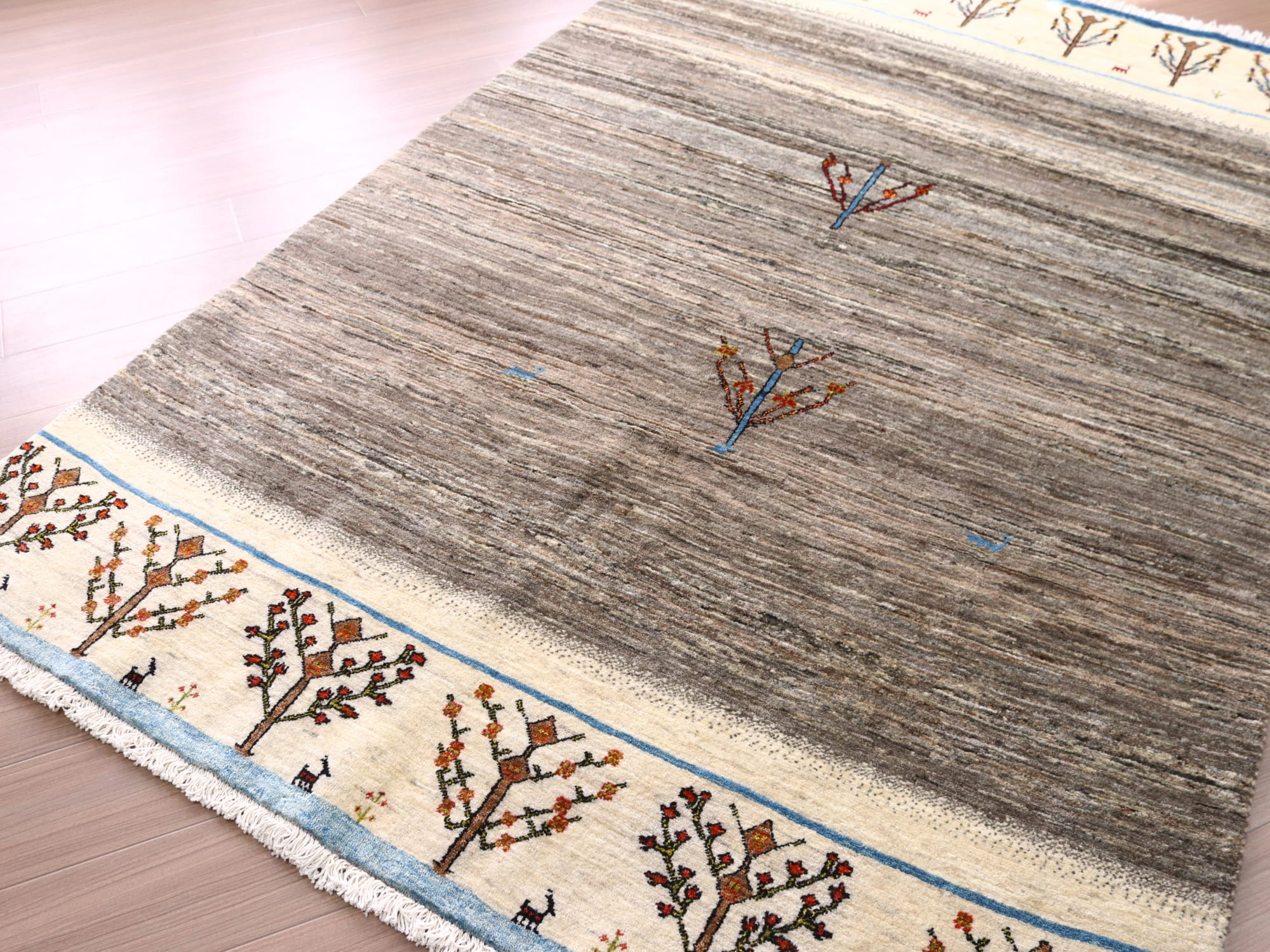 ギャッベ リズバフト 細かな織り243×162cm ブラウン&ナチュラルアイボリー 生命の樹