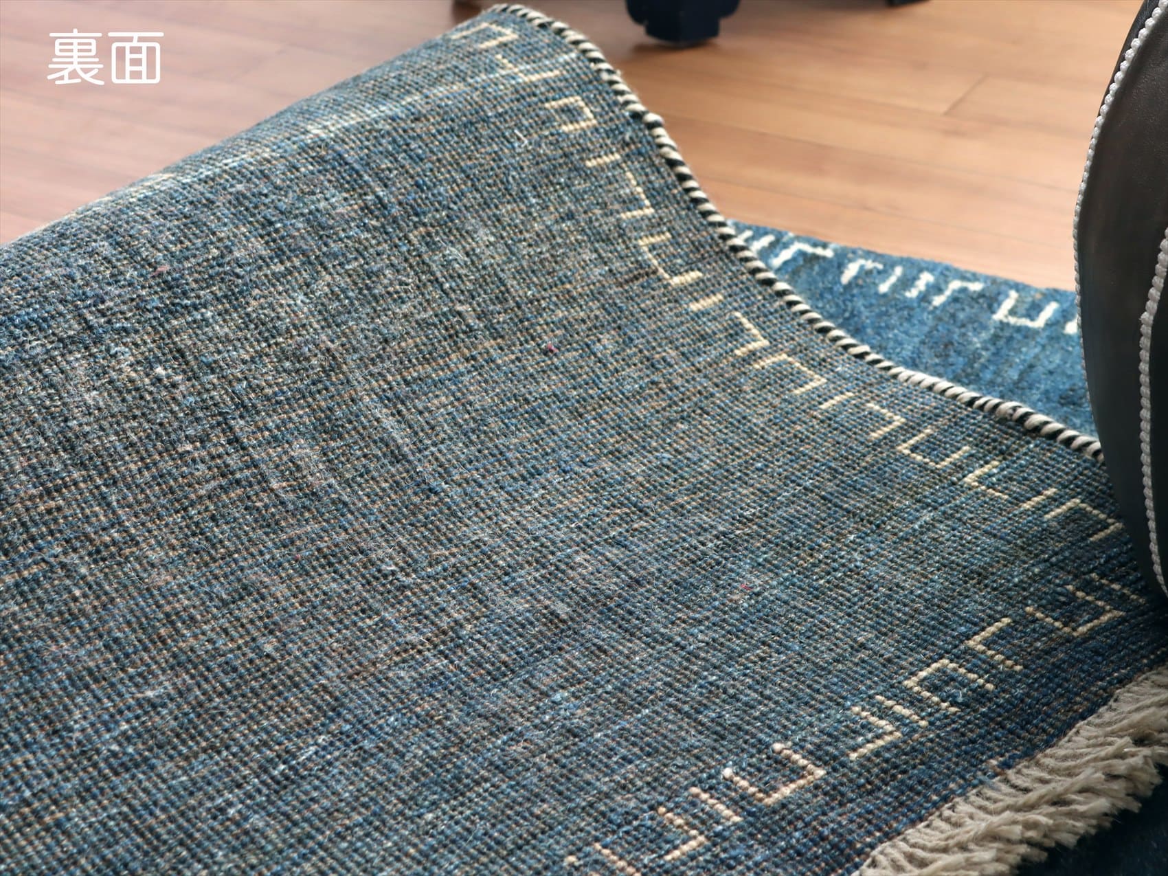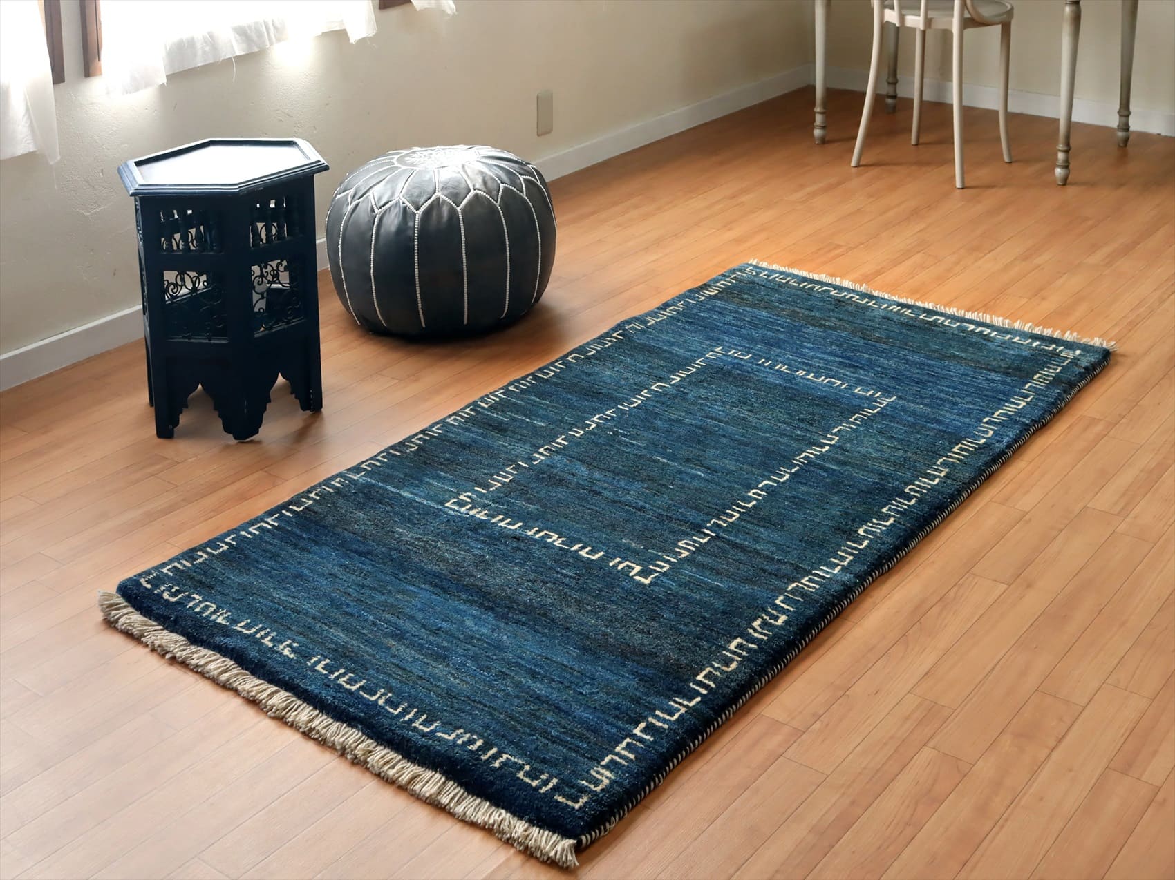 - ギャッベ カシュカイ族の手織り198×100cm ブルー 幾何学模様
