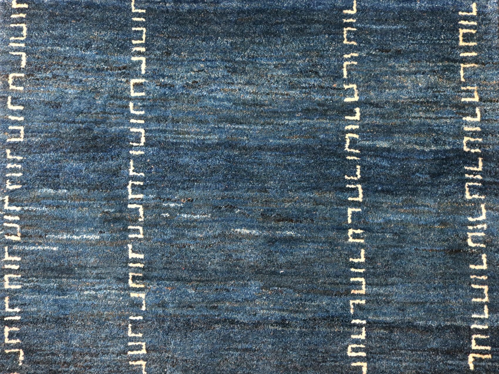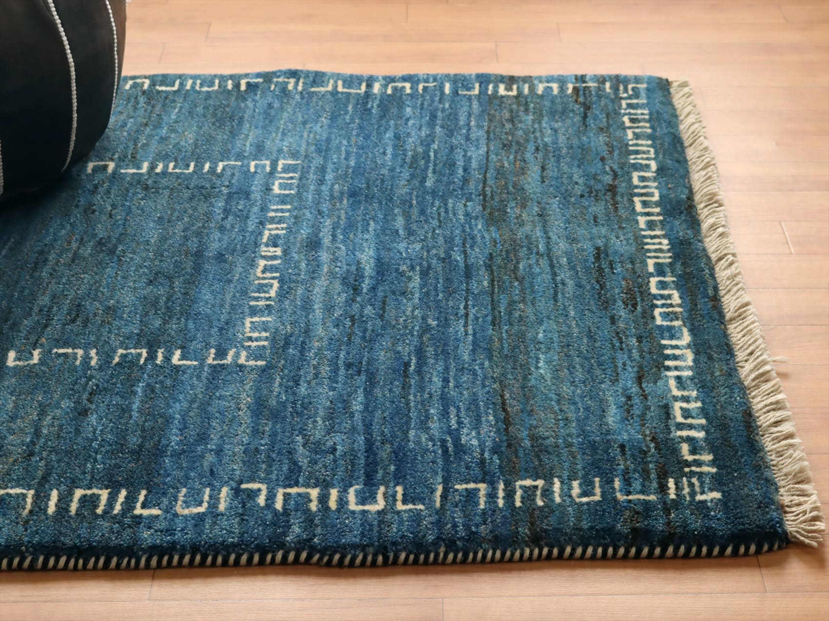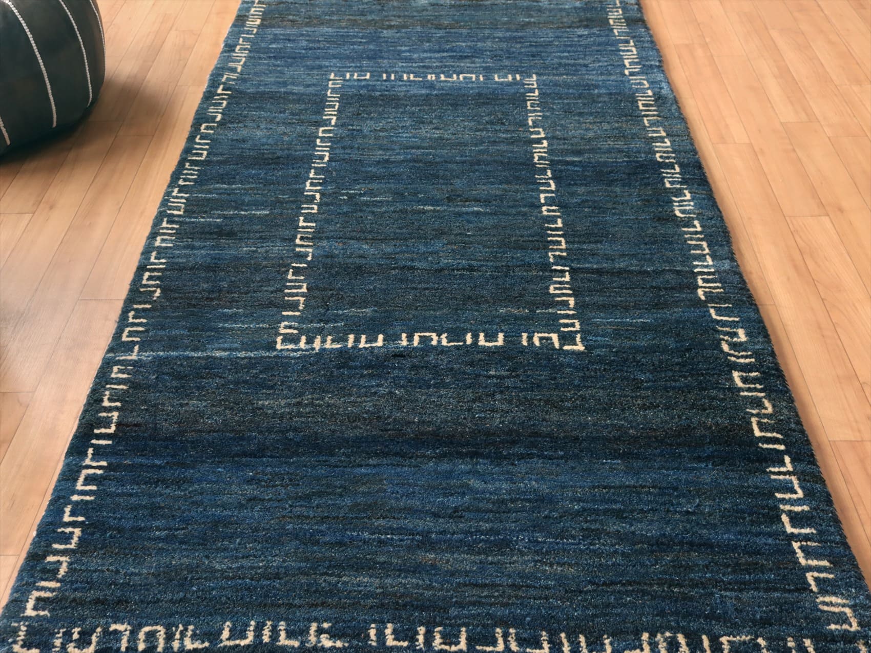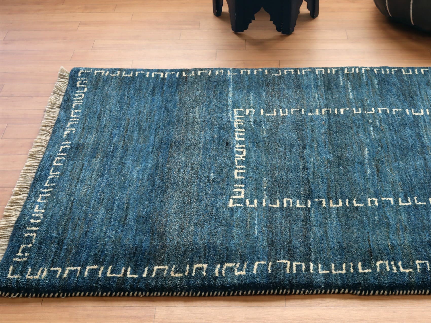 ギャッベ カシュカイ族の手織り198×100cm ブルー 幾何学模様