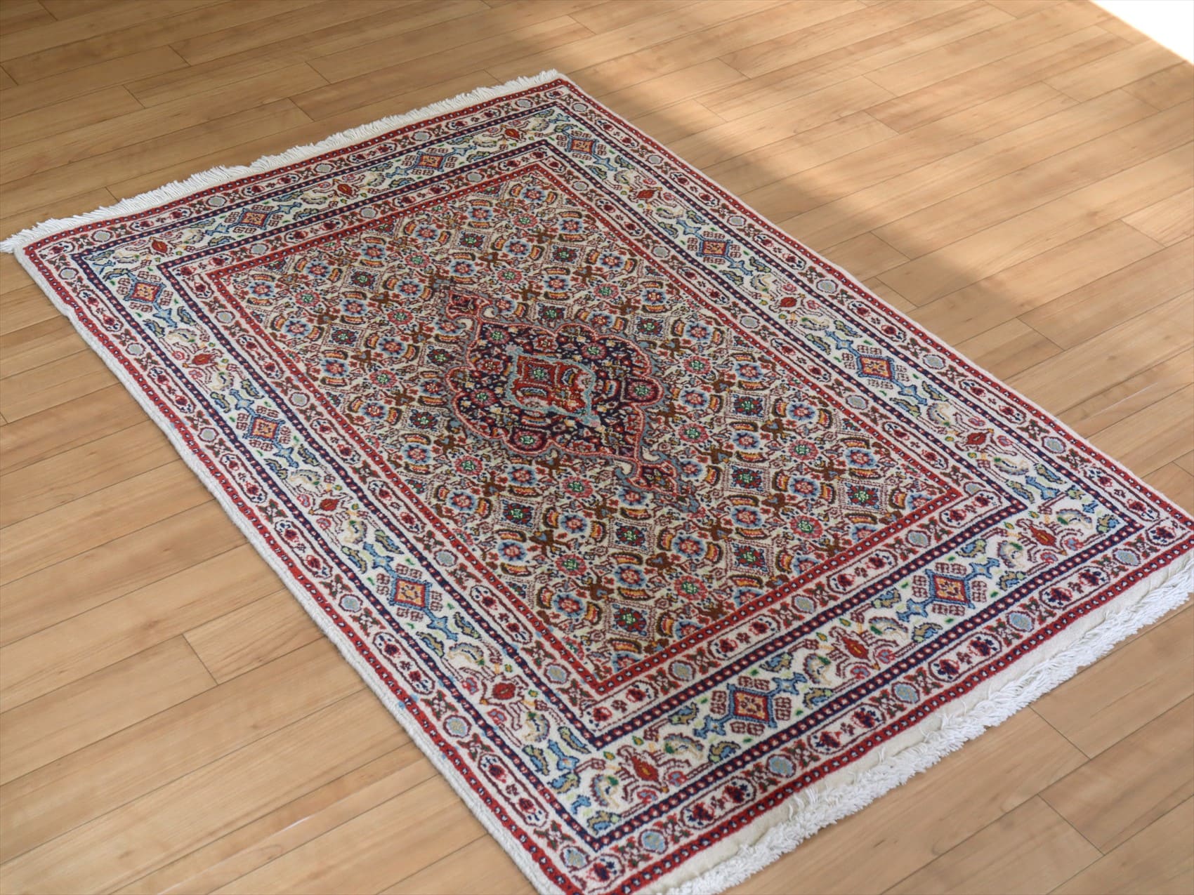 ペルシャ絨毯 ムード産手織りラグ Moud115×77cm ベージュ系 細かな花のトレリス
