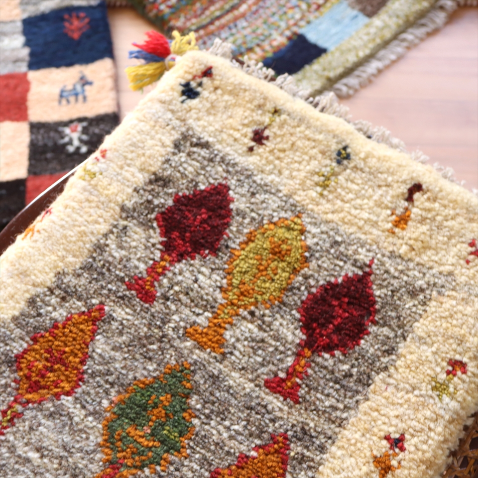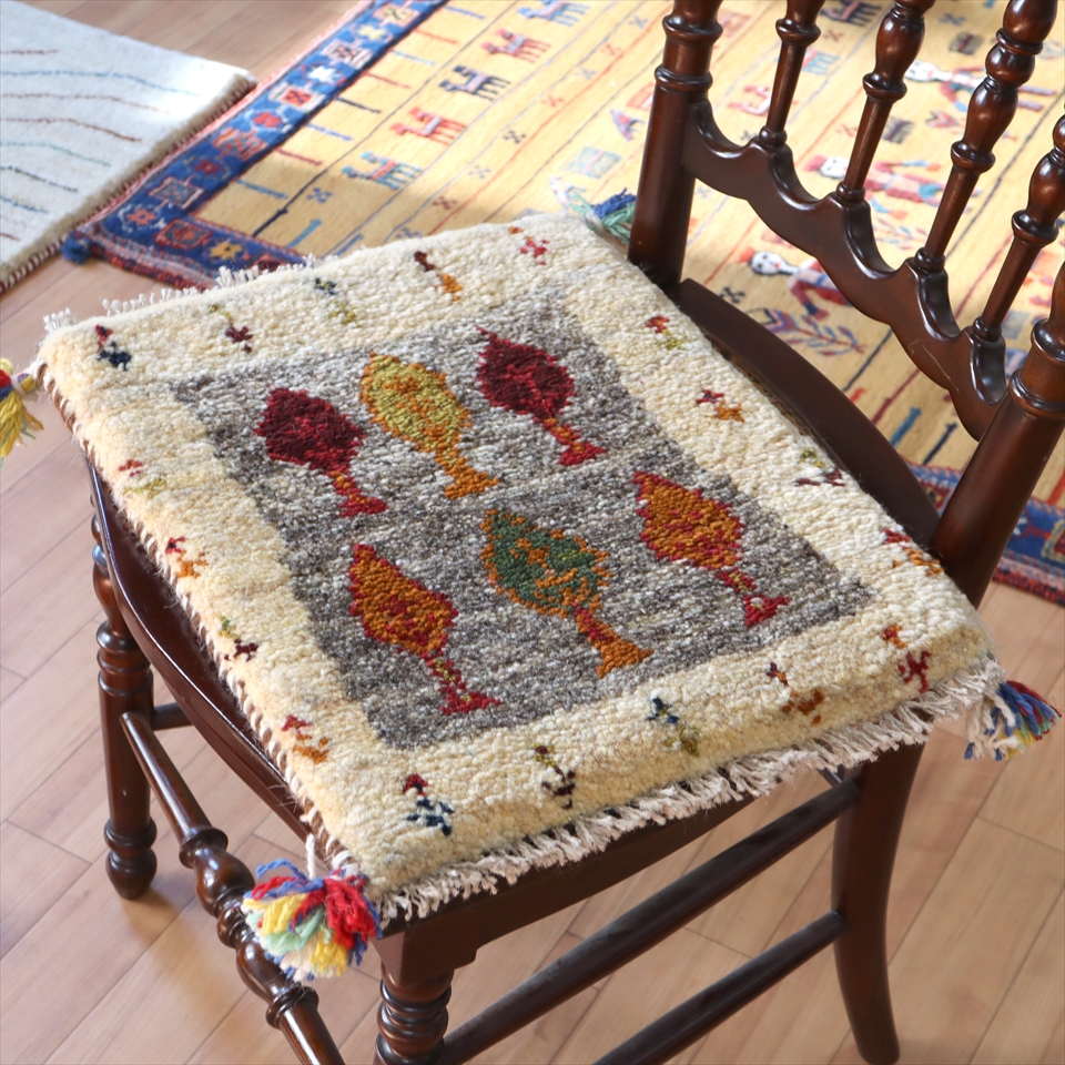 ギャッベ イラン産 ミニ 座布団サイズ42×34cm 色とりどりの命の木 縦長