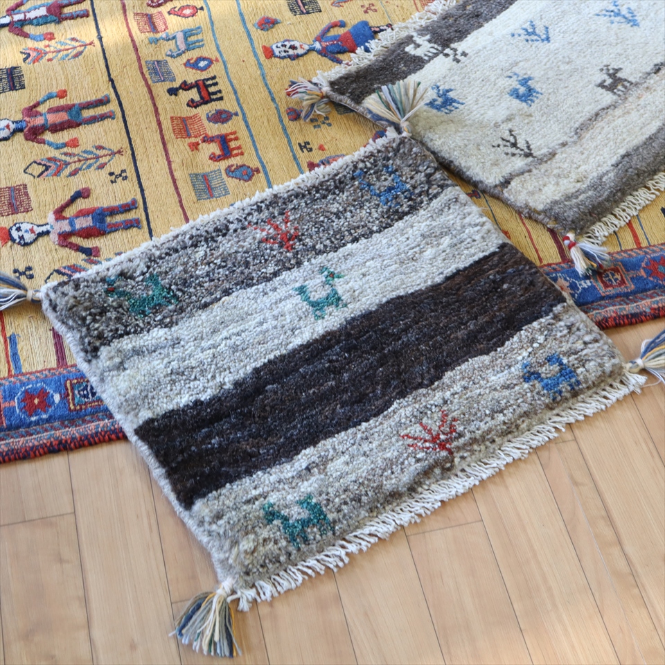 ギャッベ イラン産 ミニ 座布団サイズ41×47cm グレーグラデーション