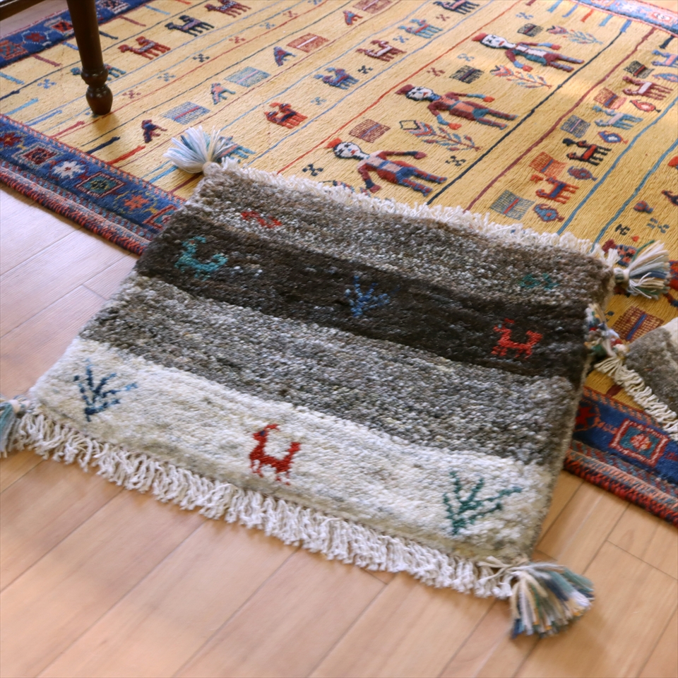 - ギャッベ イラン産 ミニ 座布団サイズ40×46cm グレーグラデーション