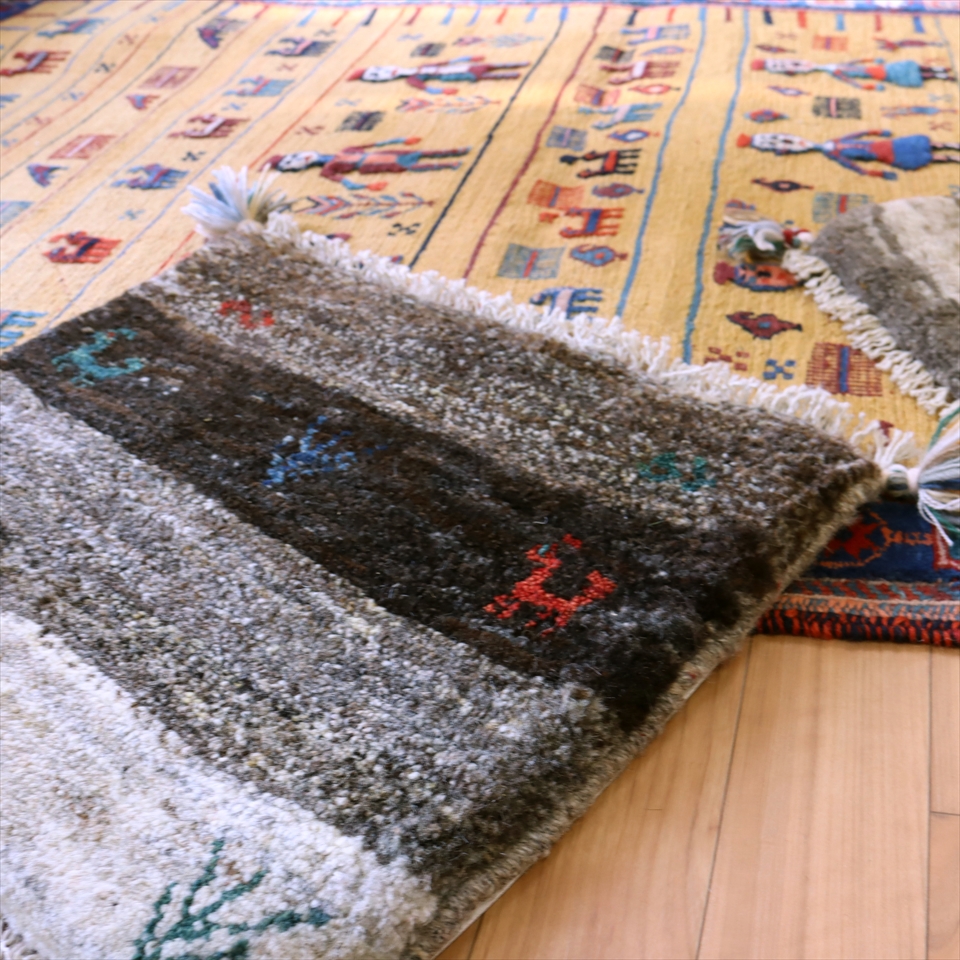 | 手織りならではの素朴な雰囲気があるギャッベ。形が少しゆがんでいたり、途中でモチーフが途切れていたりなどありますが、それもまた味わいです。世界で一枚だけのユニークなギャッベをお楽しみください。 |