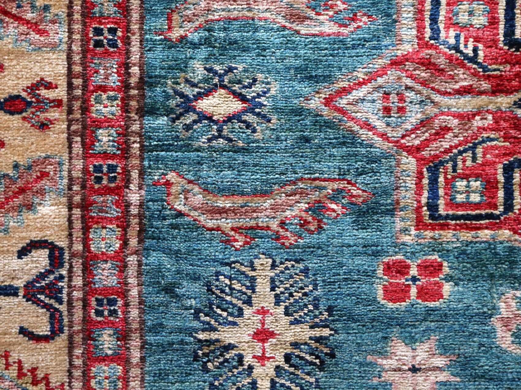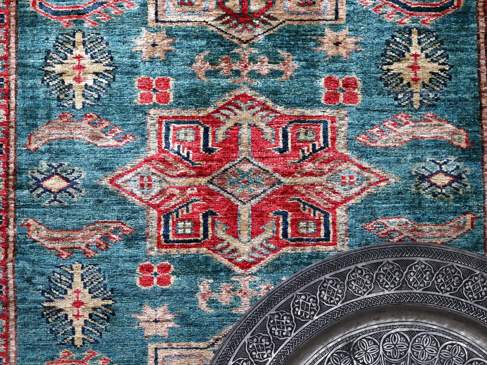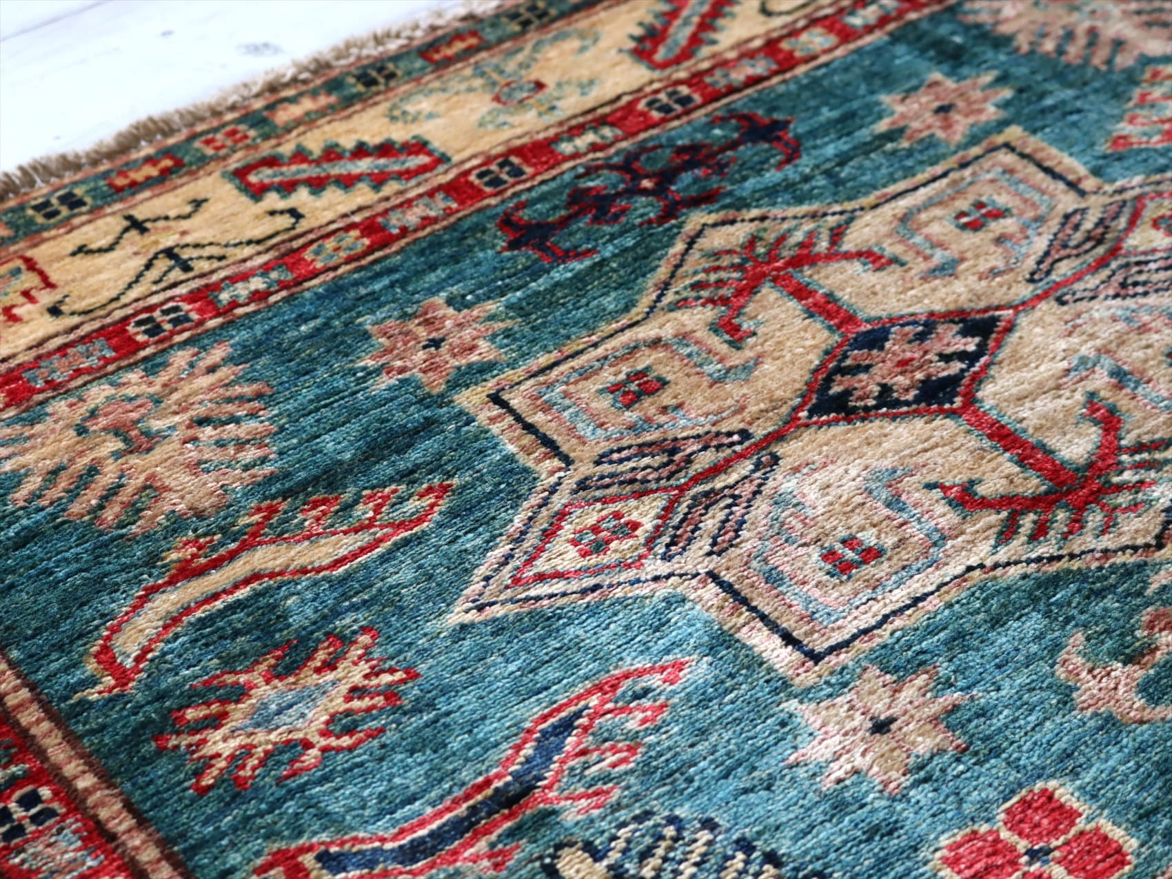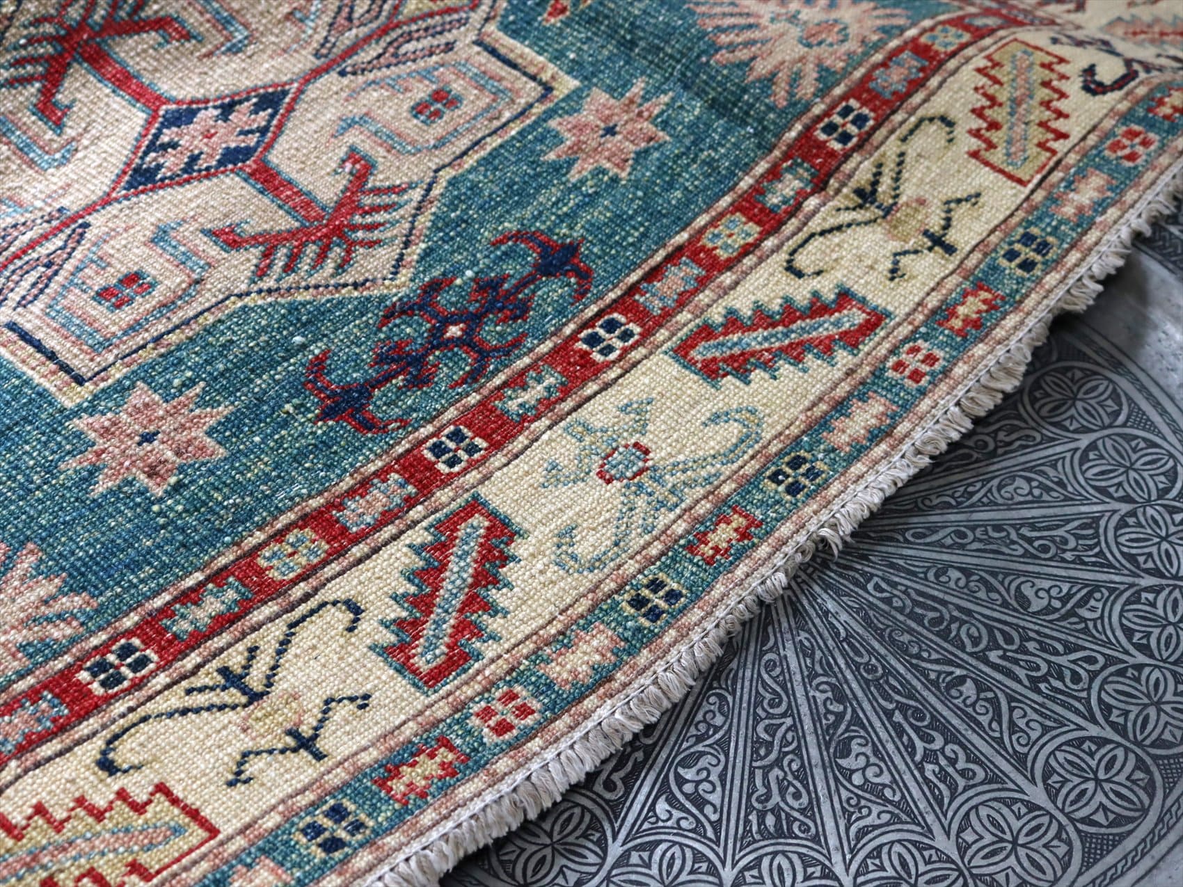 | じゅうたんコレクターの間で特に人気の高い、コーカサス地方のアンティークカーペットのデザインを再現した、リプロダクションです。トルコに近い言語を話すアゼルバイジャン地方のじゅうたんは、デザインも比較的トルコに近く、細かな幾何学模様を組み合わせたものが多く見られます。 天然の染料を使って、少し使い込んだような色ムラのあるアンティーク風に織られています。 |