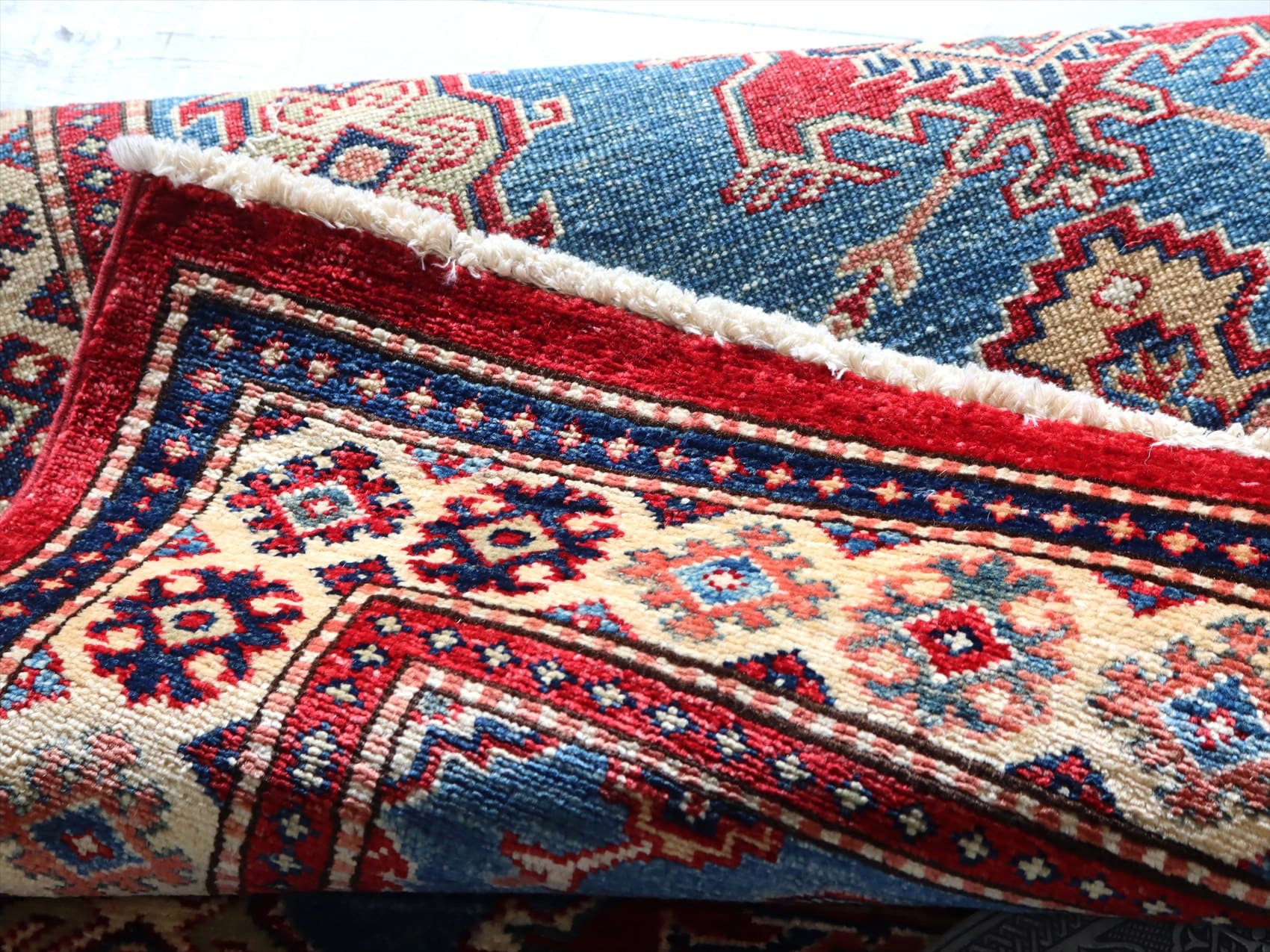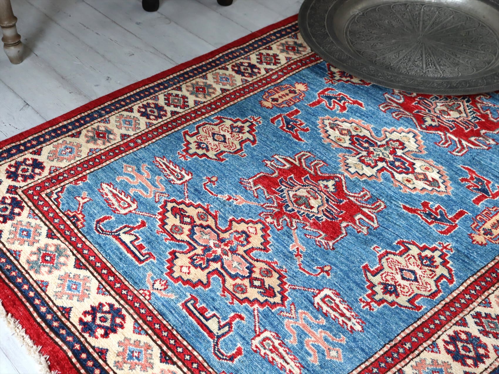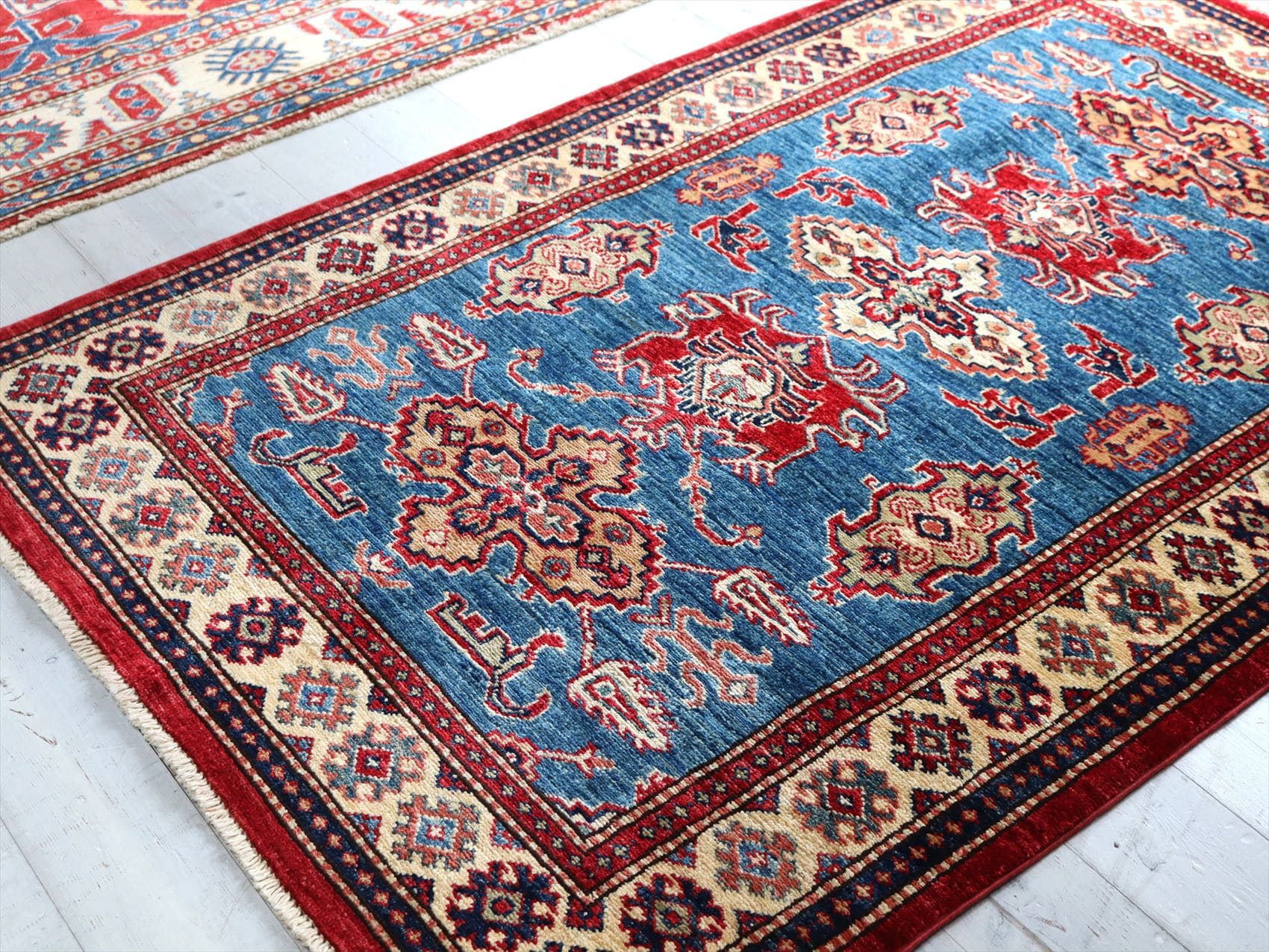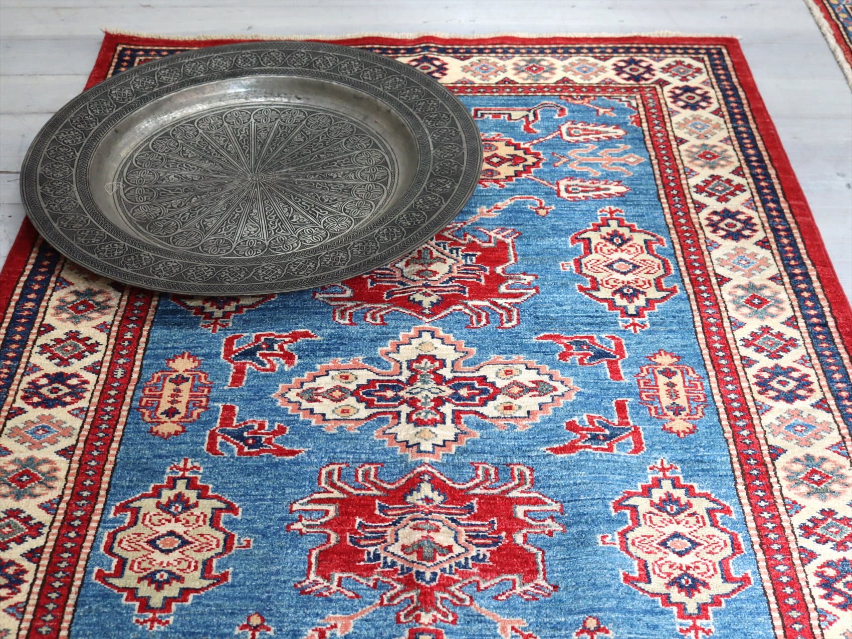 | じゅうたんコレクターの間で特に人気の高い、コーカサス地方のアンティークカーペットのデザインを再現した、リプロダクションです。トルコに近い言語を話すアゼルバイジャン地方のじゅうたんは、デザインも比較的トルコに近く、細かな幾何学模様を組み合わせたものが多く見られます。 天然の染料を使って、少し使い込んだような色ムラのあるアンティーク風に織られています。 |