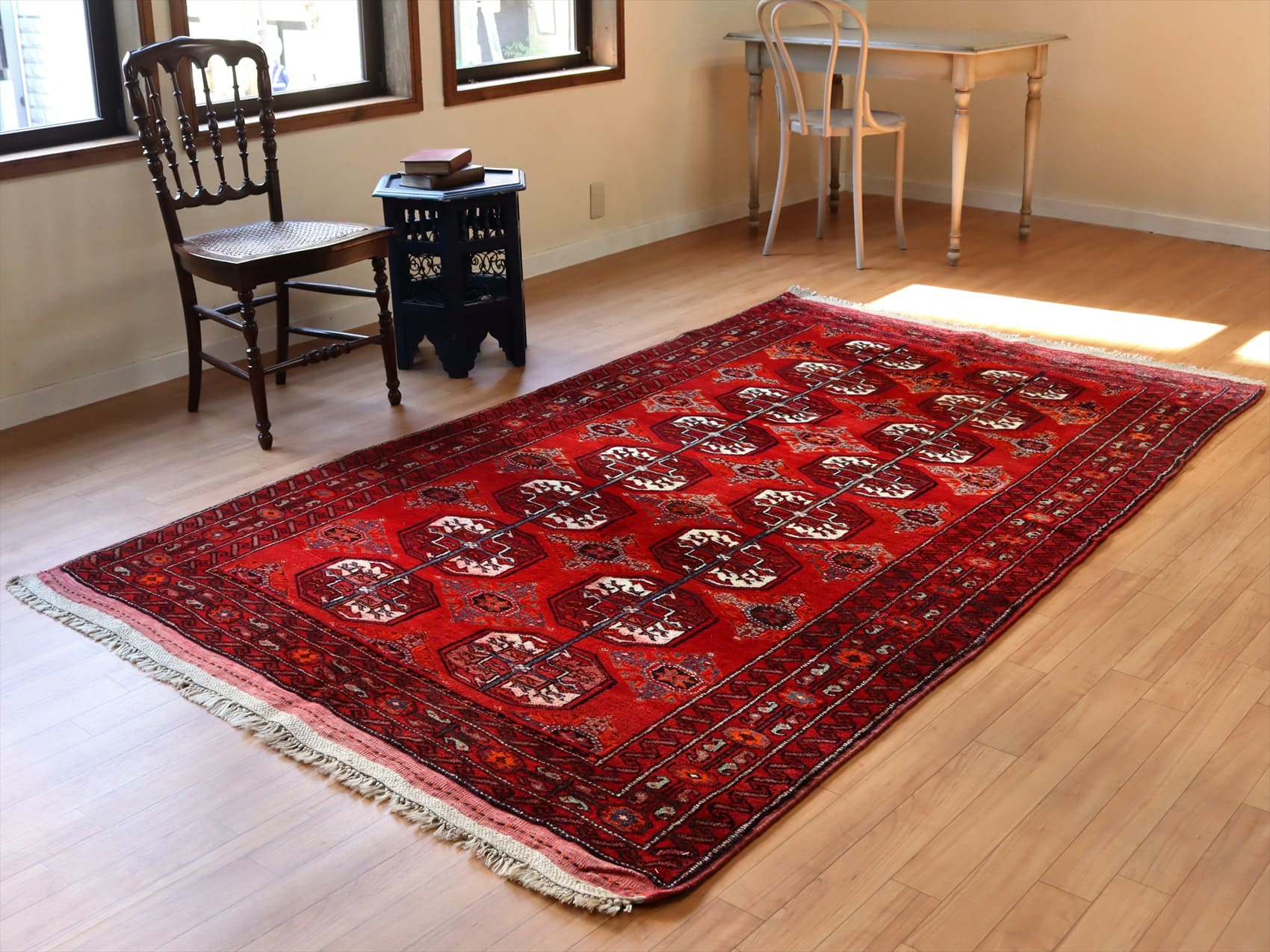 Key:Tribal rug, Old carpet, Red carpet, Area rug, hand knotted, オールドカーペット, 部族絨毯, トライバルラグ, ヴィンテージラグ, BOHO, 手織り, ウール, ペルシャじゅうたん, Turkmen, mapTurkmen