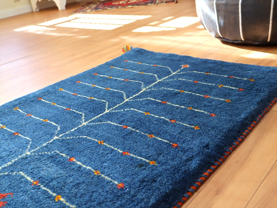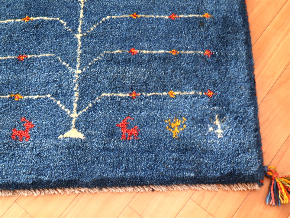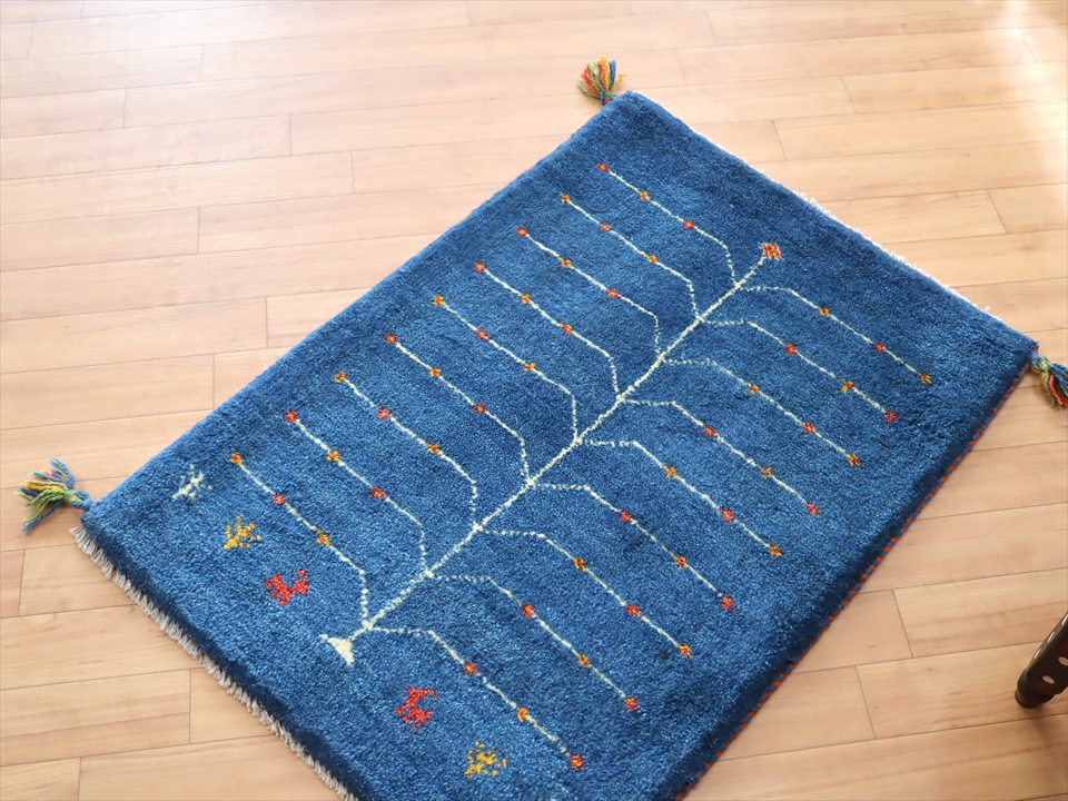 ギャッベ 玄関マット88×63cm 明るいブルー 生命の樹