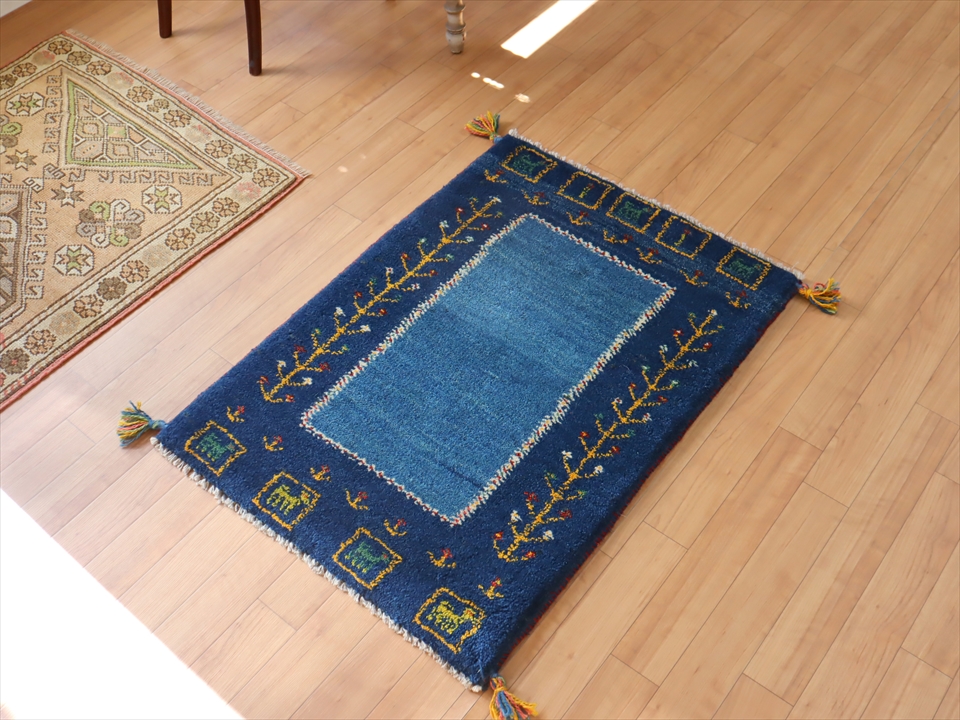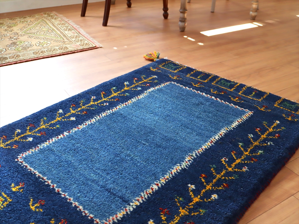 ギャッベ 玄関マット90×62cm ブルーのツートーン