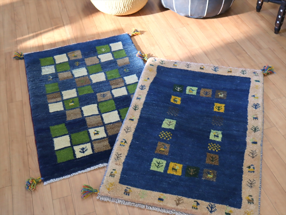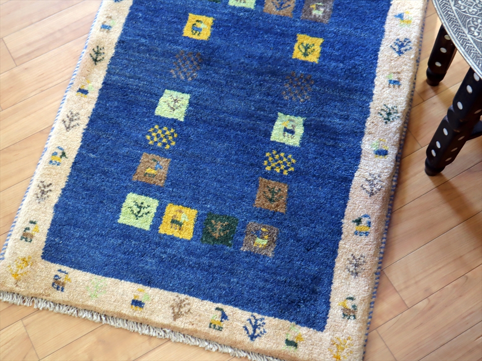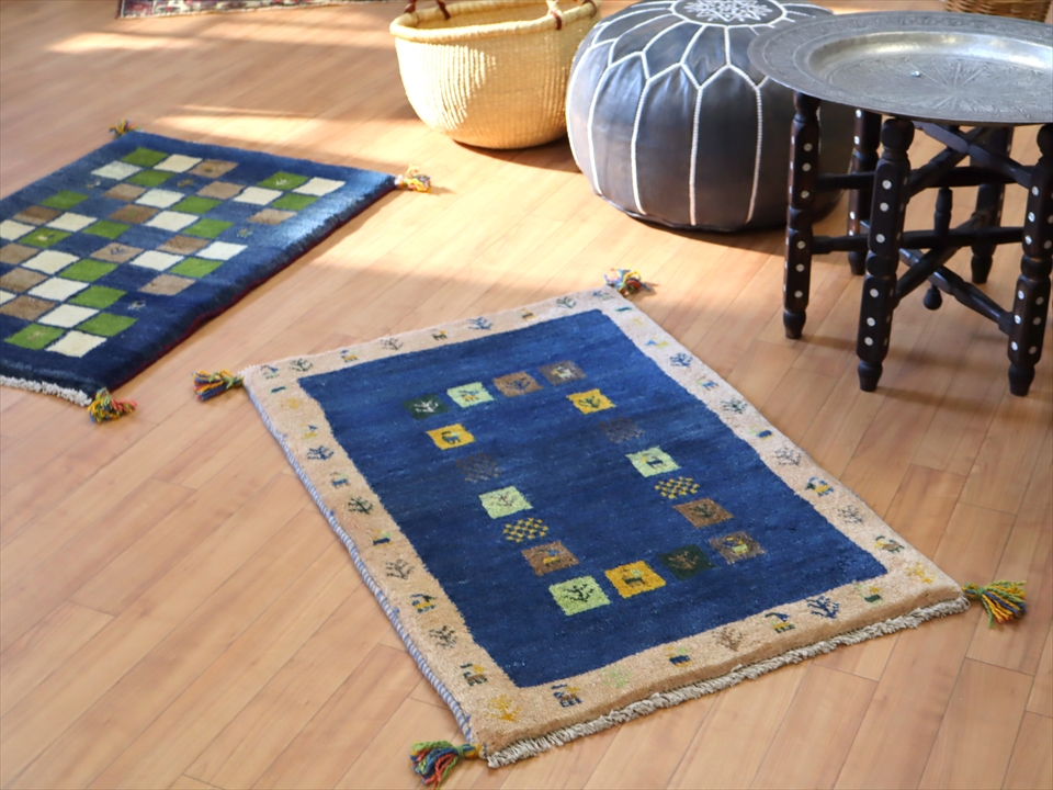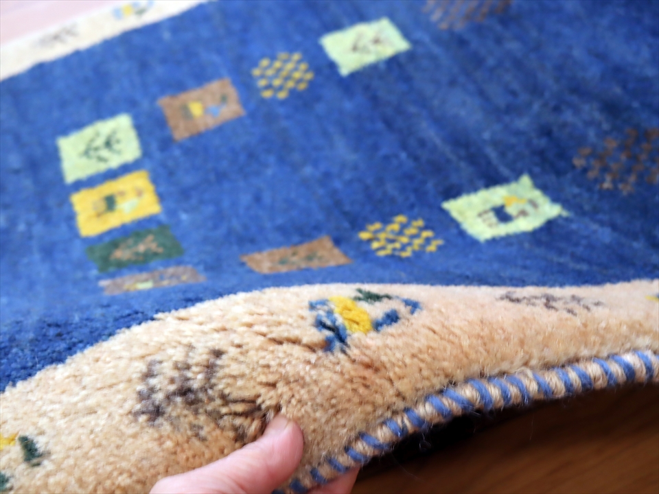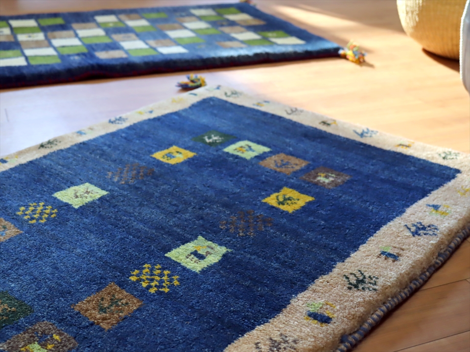 ギャッベ 玄関マット90×62cm コバルトブルー/ベージュ