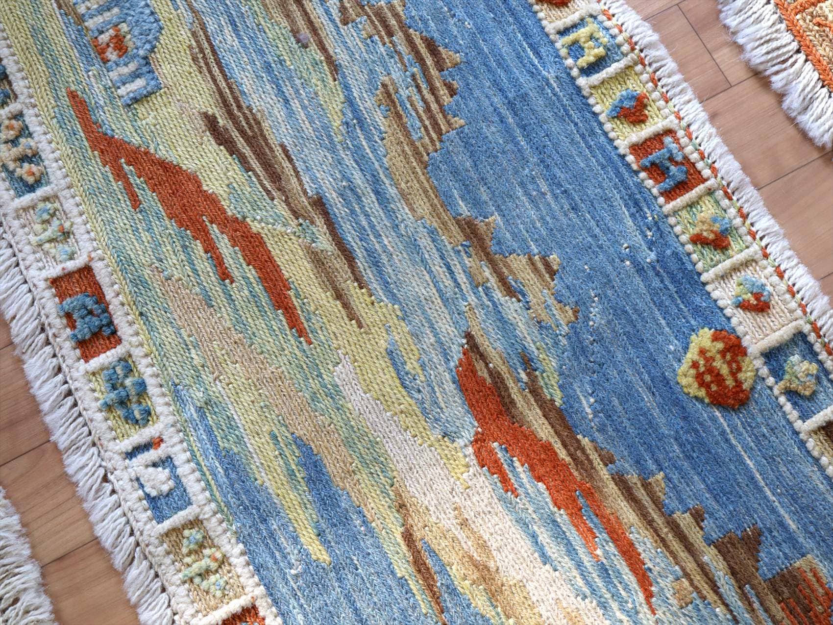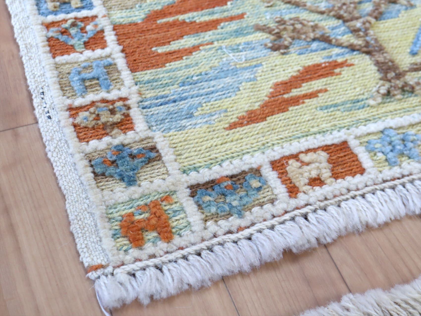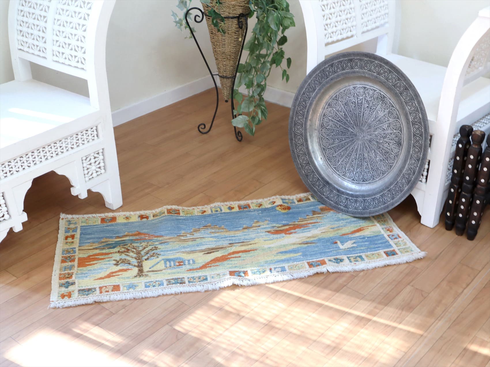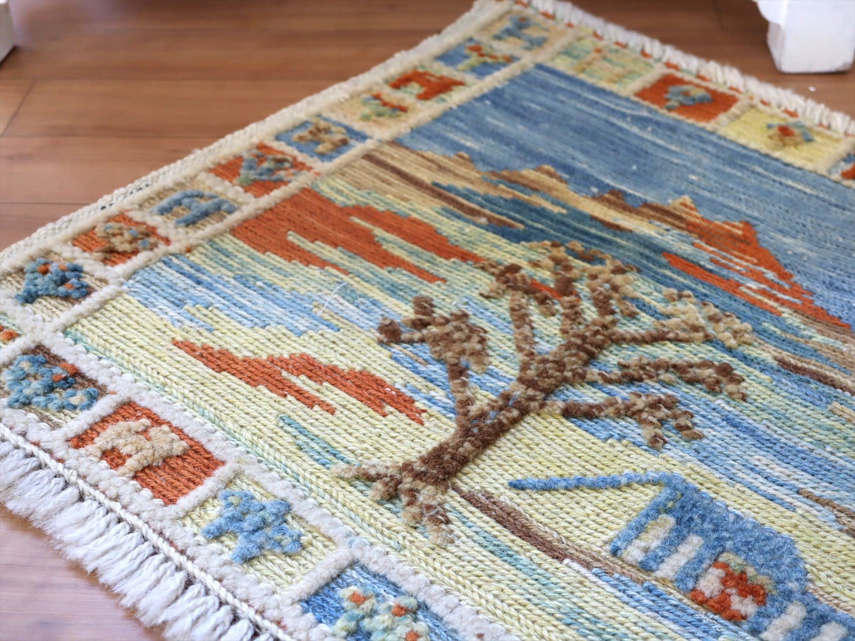 ギャッベスマックキリム 遊牧民の織る風景のラグ46×119cm 山麓と草原と湖