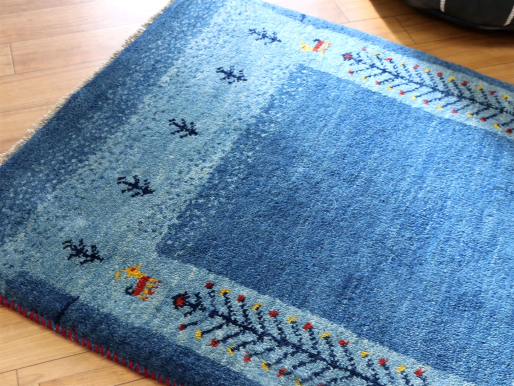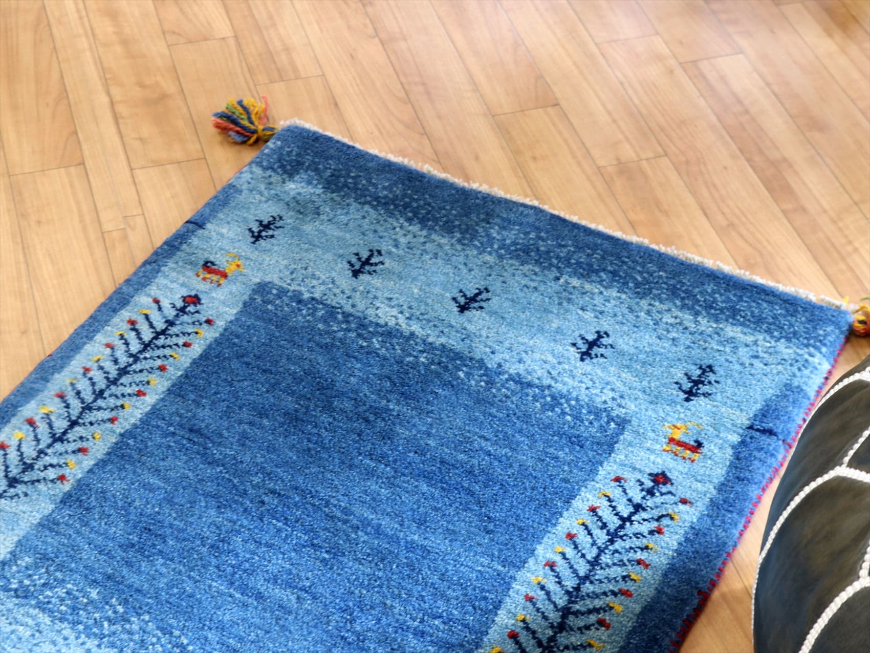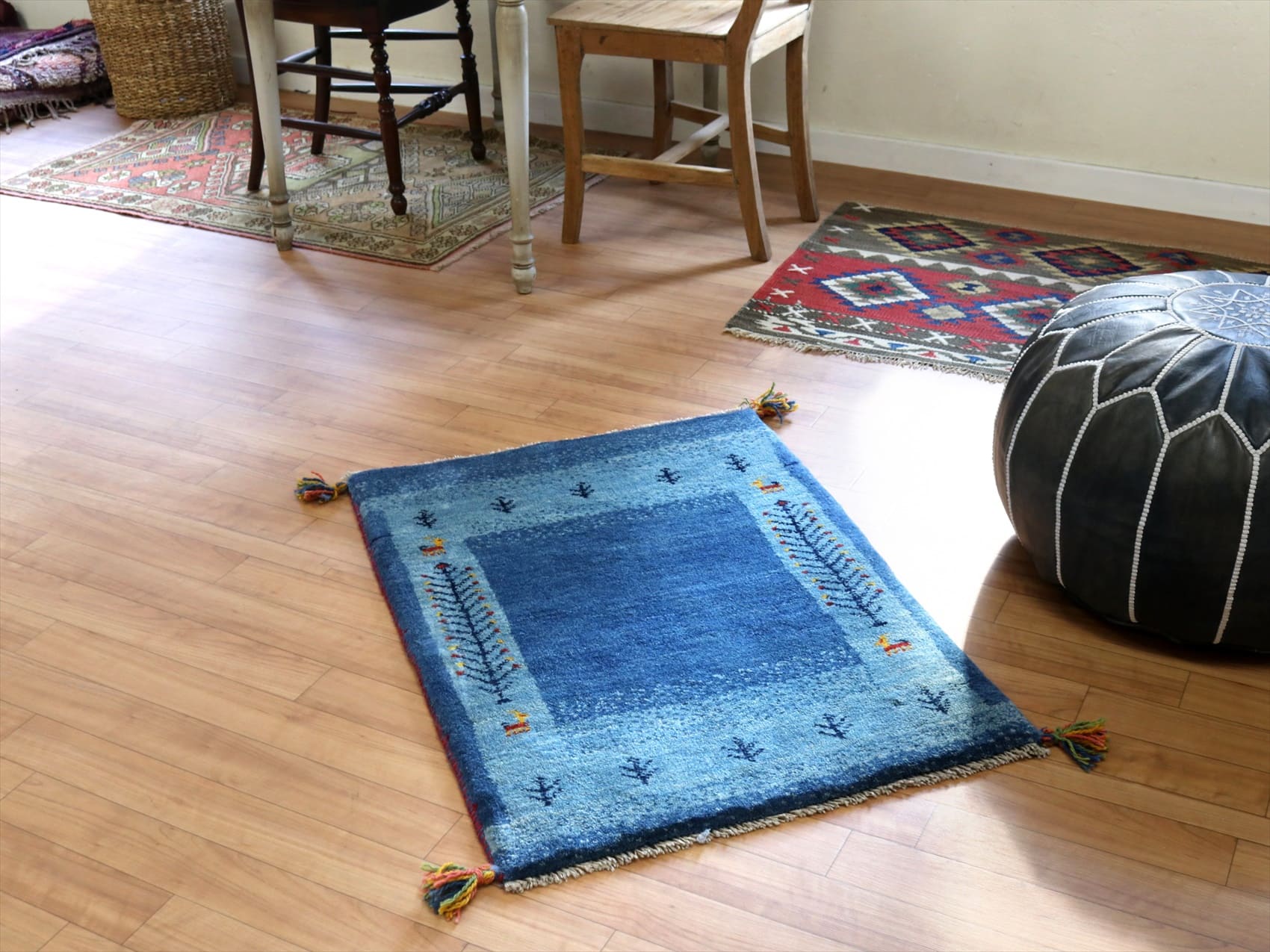 ギャッベ 玄関マットサイズ85×60cm ブルー