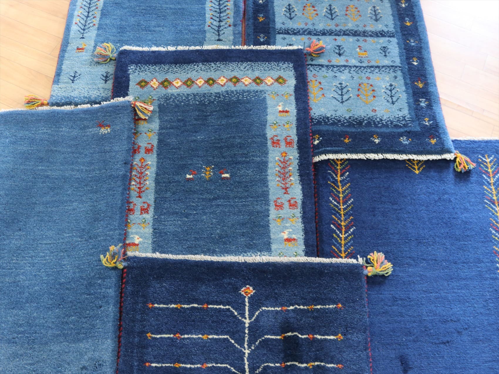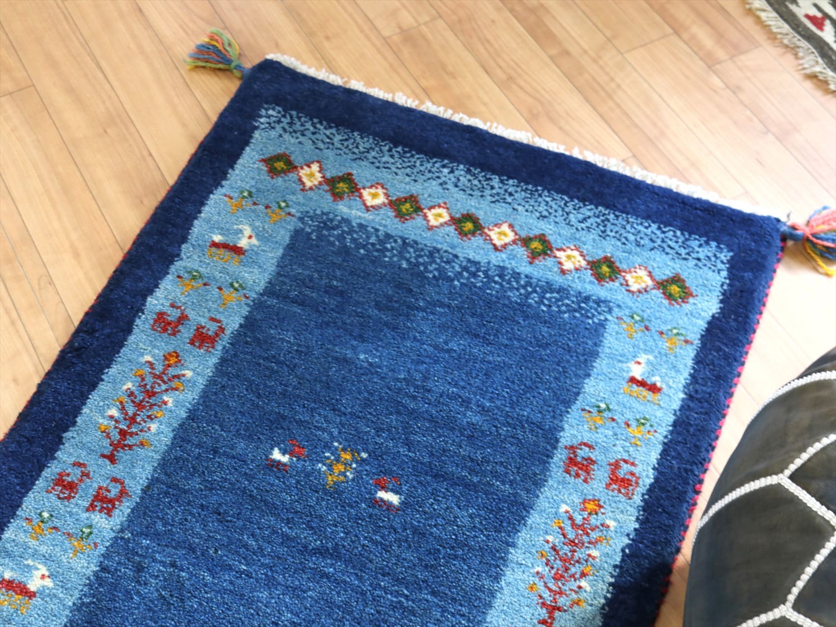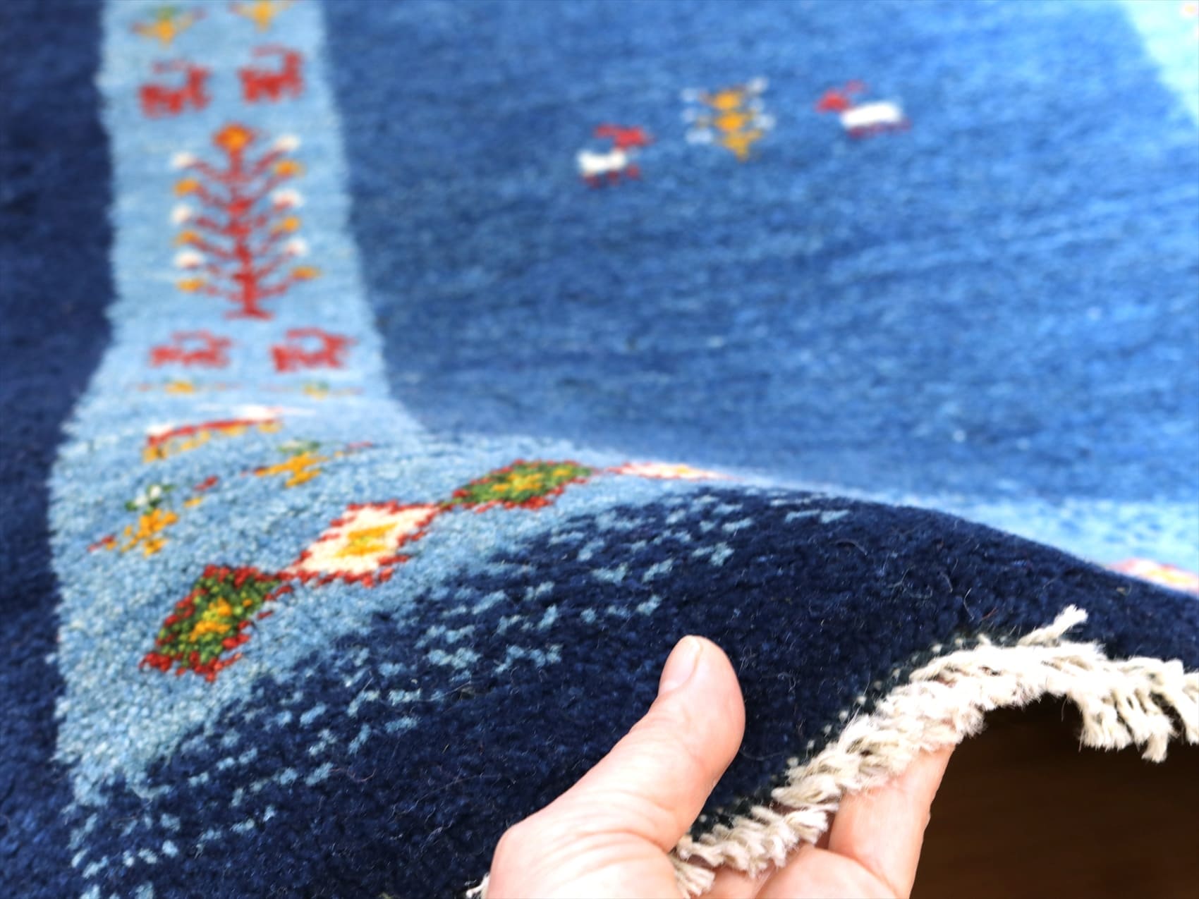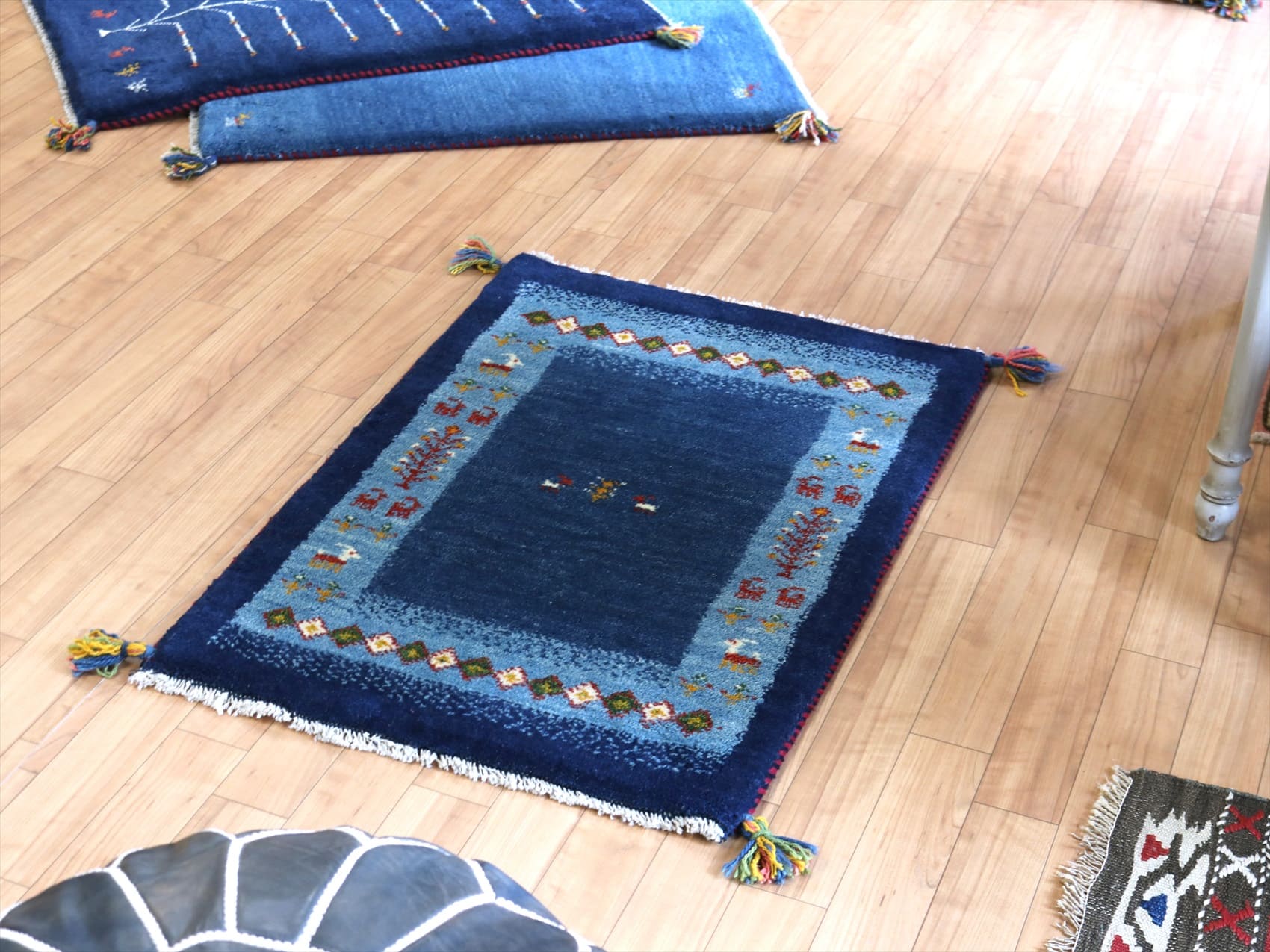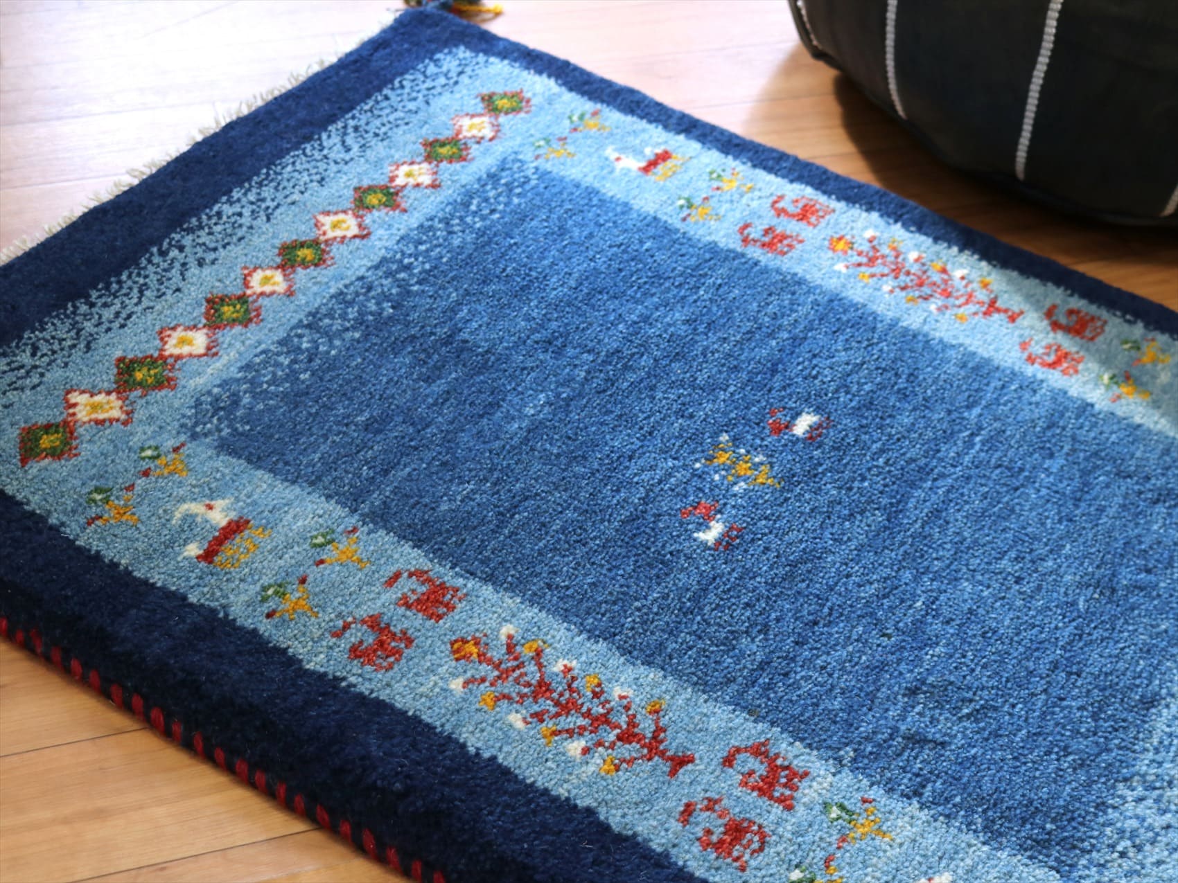ギャッベ 玄関マットサイズ85×60cm ブルー