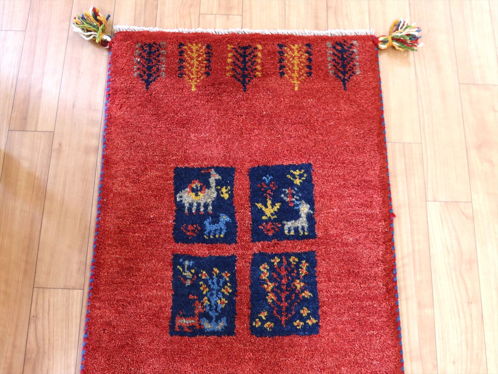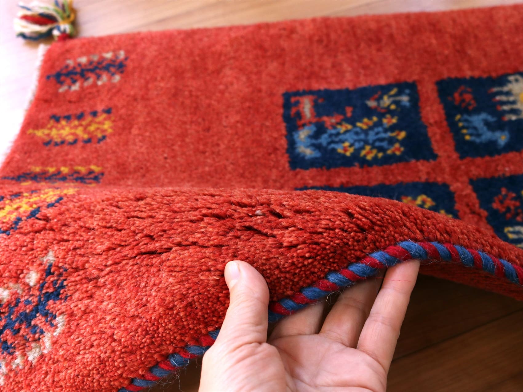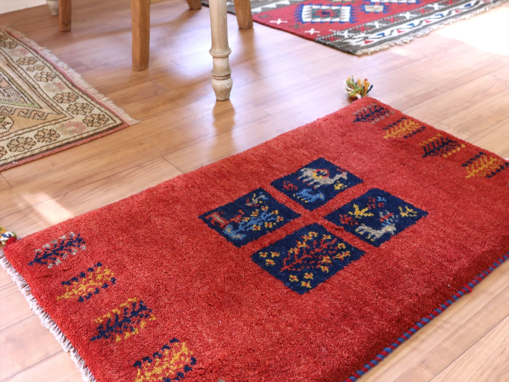 | パイル(毛足)がながく、ふっくらした織りのギャッベ。少し小さめの玄関マットサイズです。 |