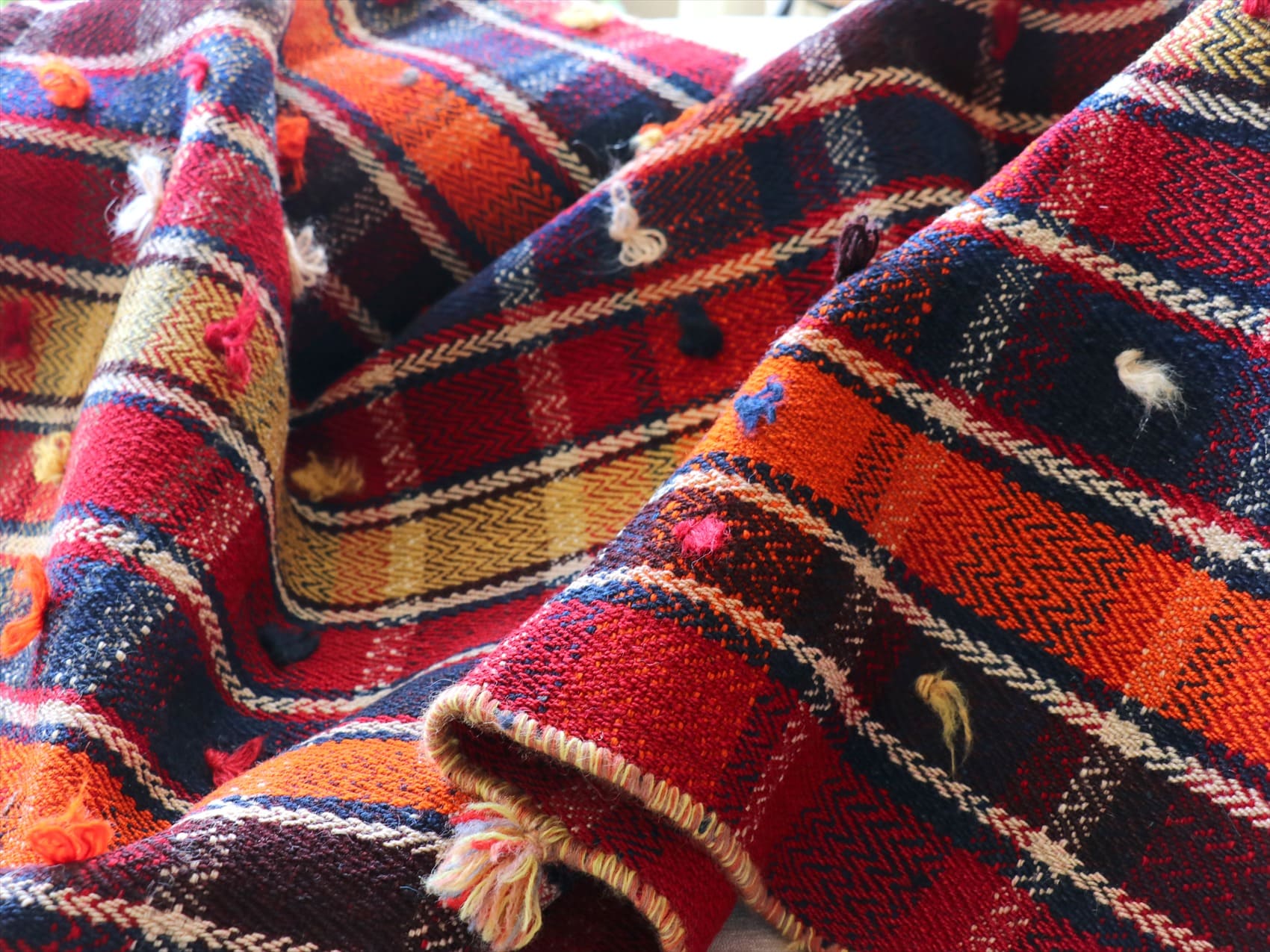 オールドジャジム テント布174×71cm レッド オレンジ ネイビー イエローのチェック柄