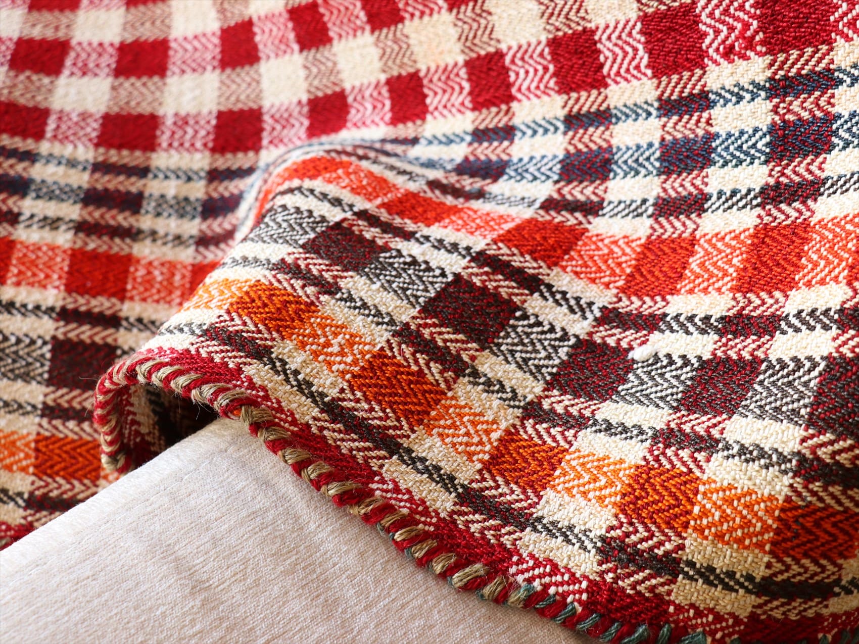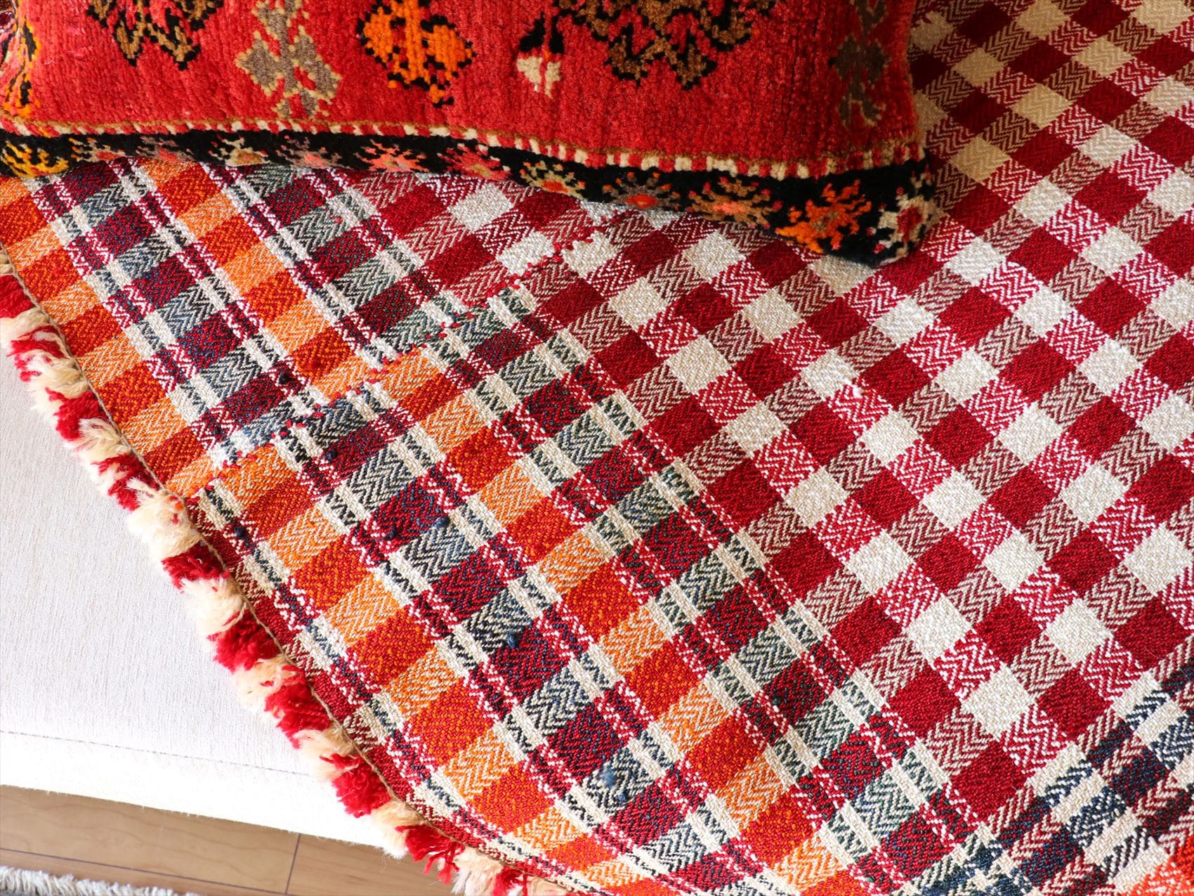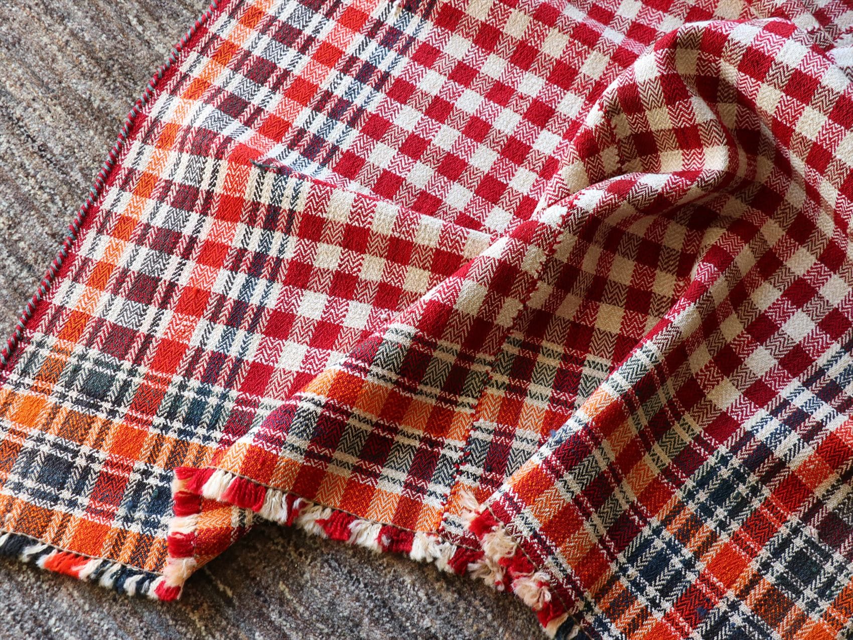 オールドジャジム テント布160×123cm レッド オレンジ ネイビーのチェック柄