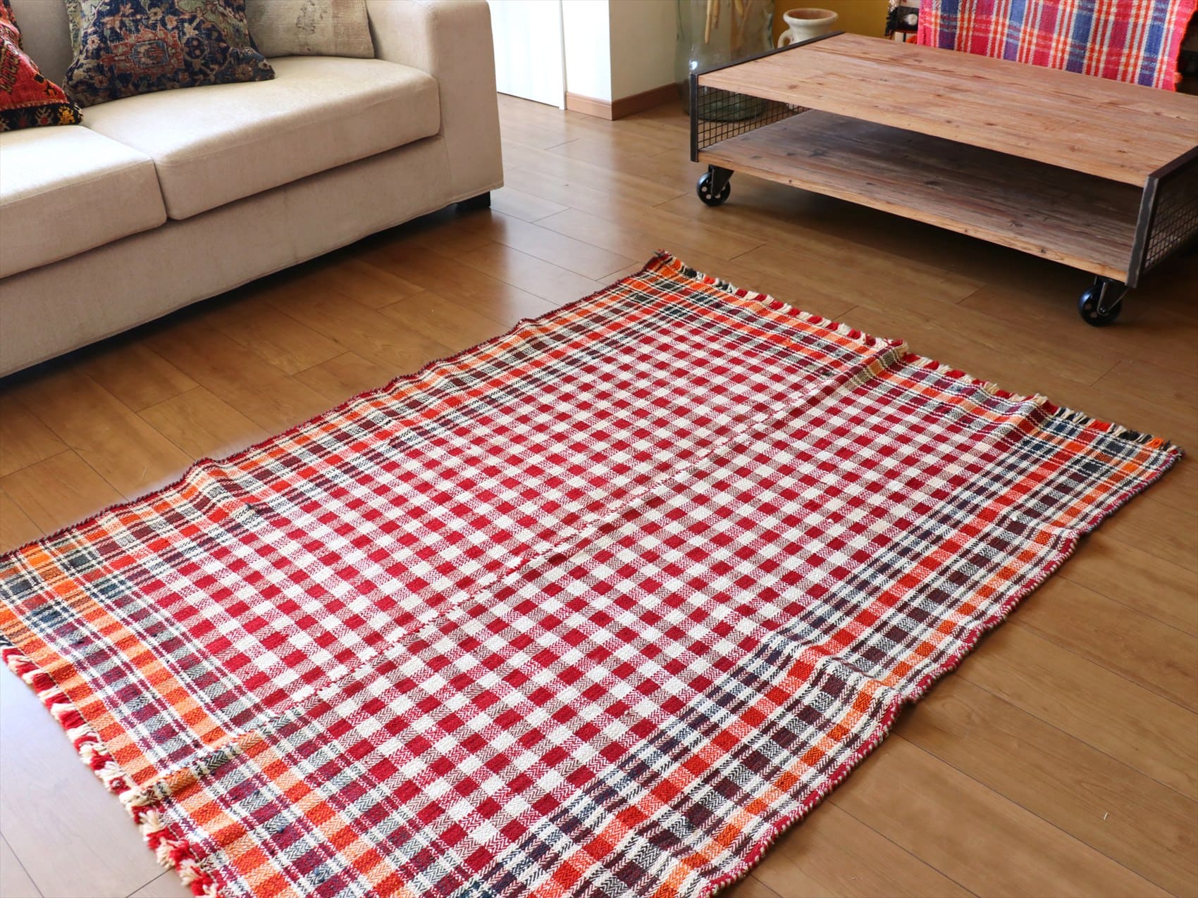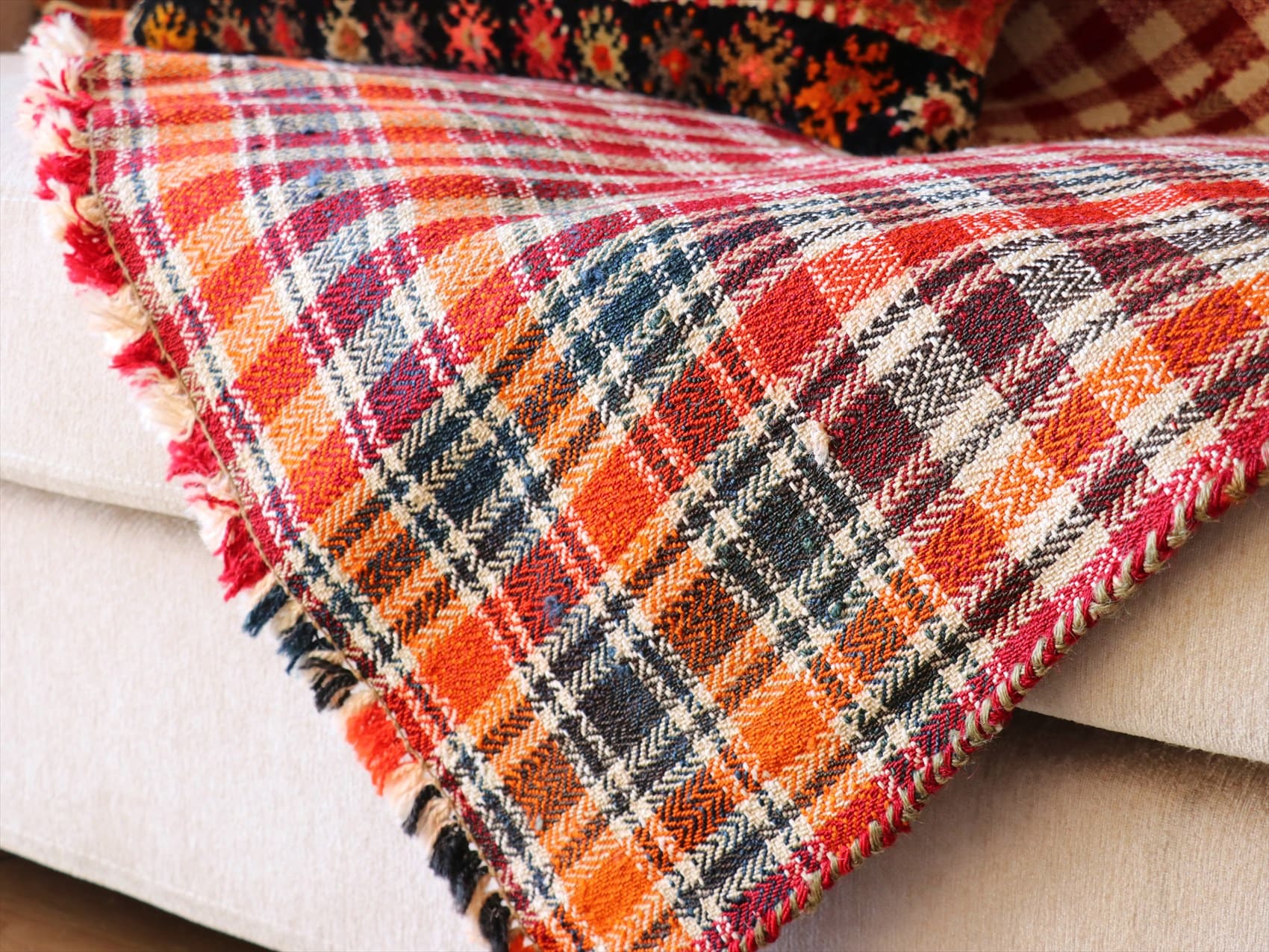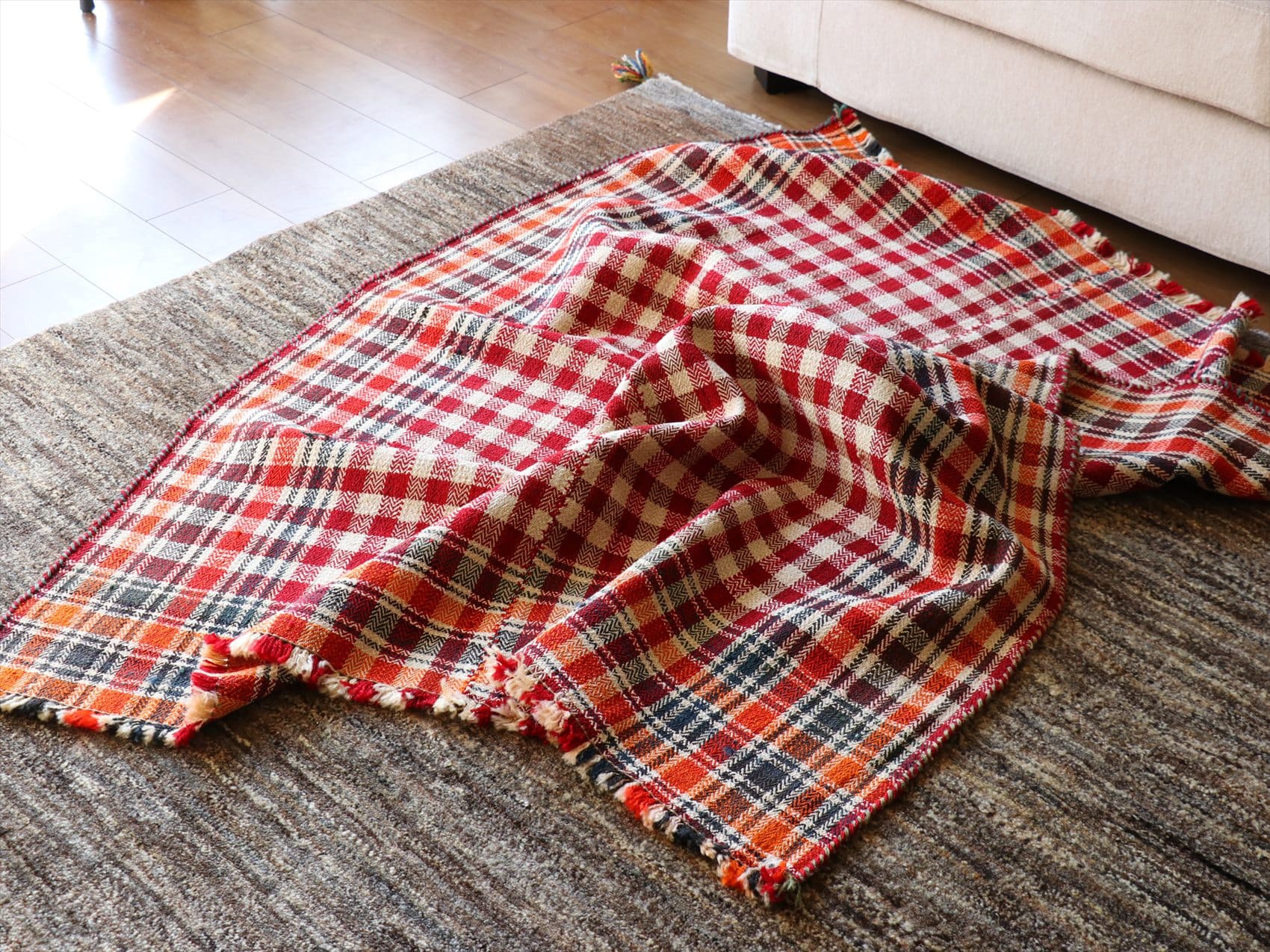オールドジャジム テント布160×123cm レッド オレンジ ネイビーのチェック柄