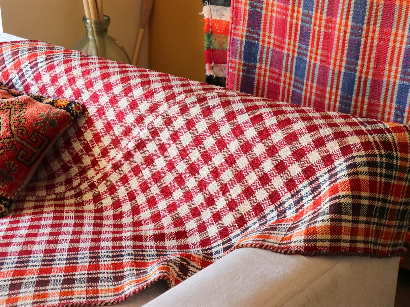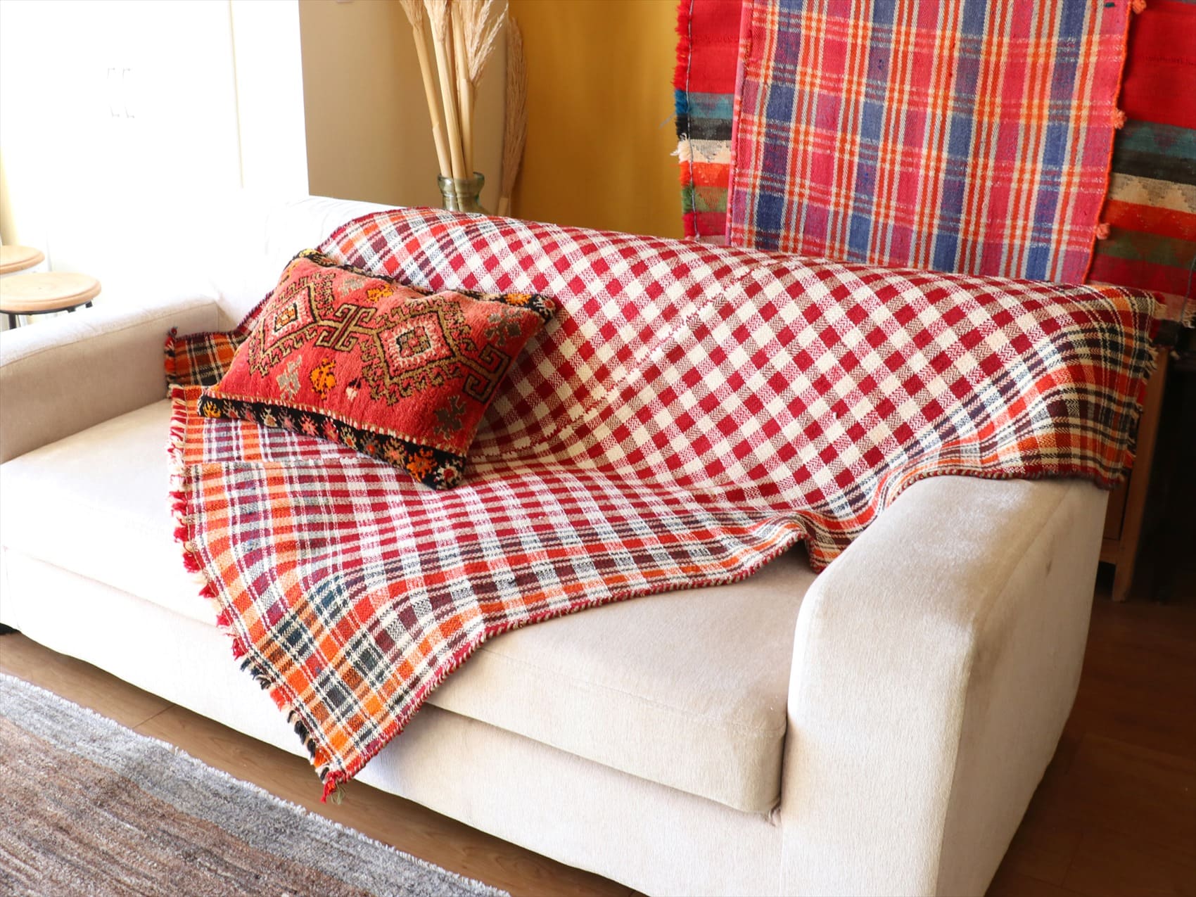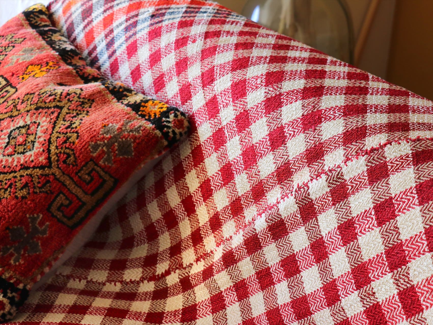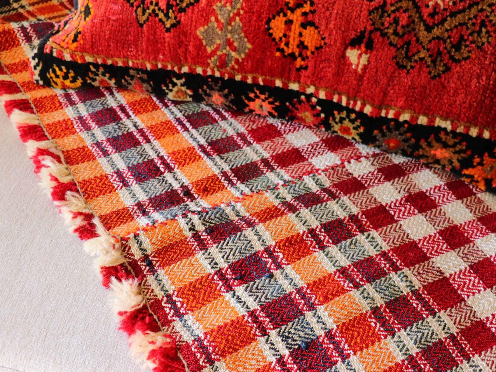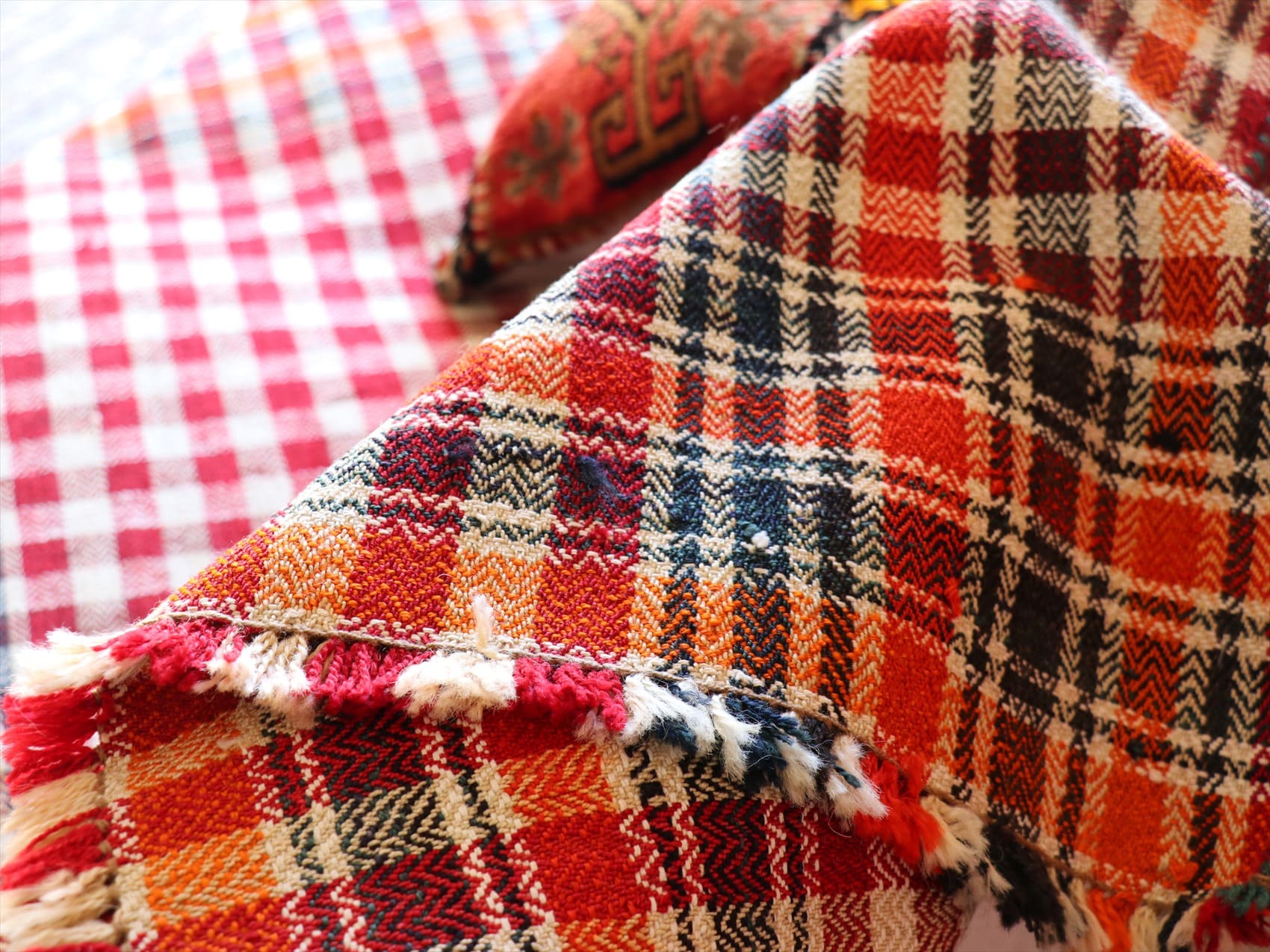 - オールドジャジム テント布160×123cm レッド オレンジ ネイビーのチェック柄