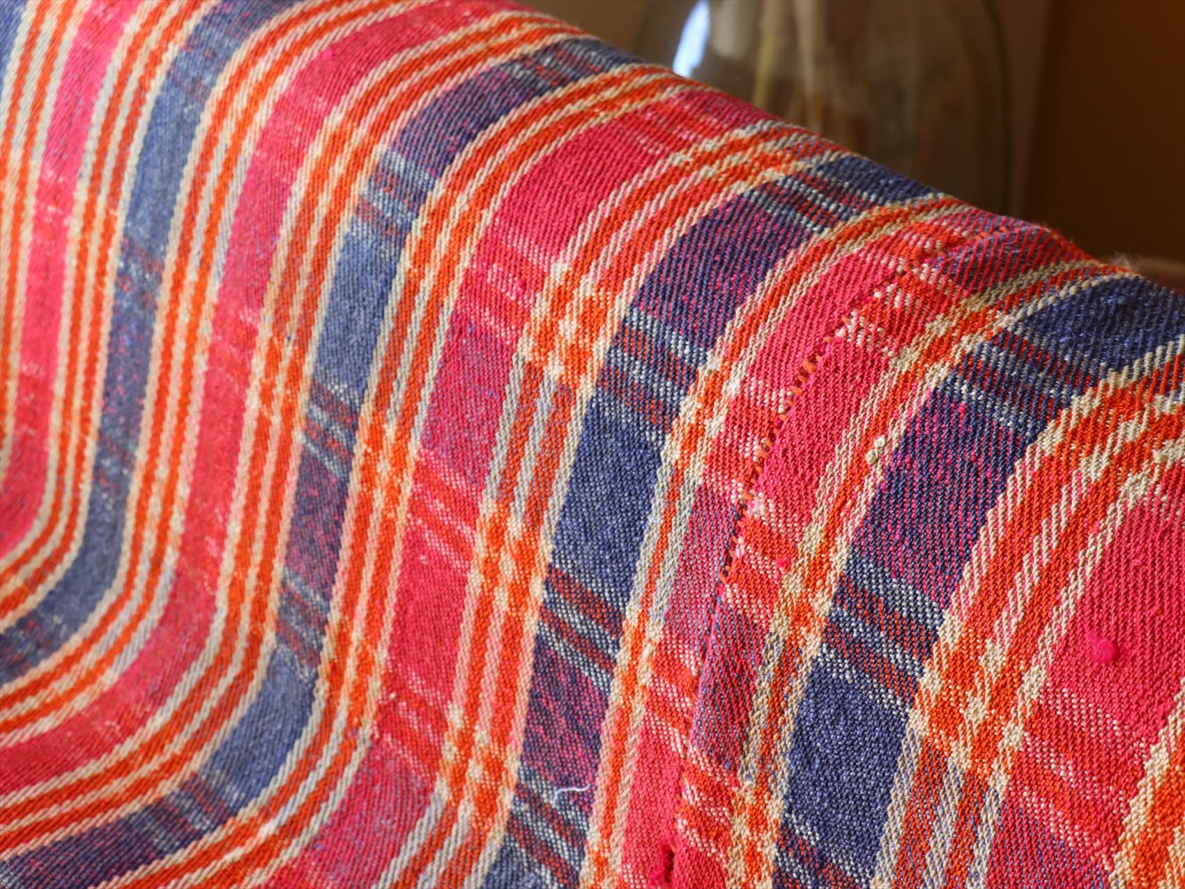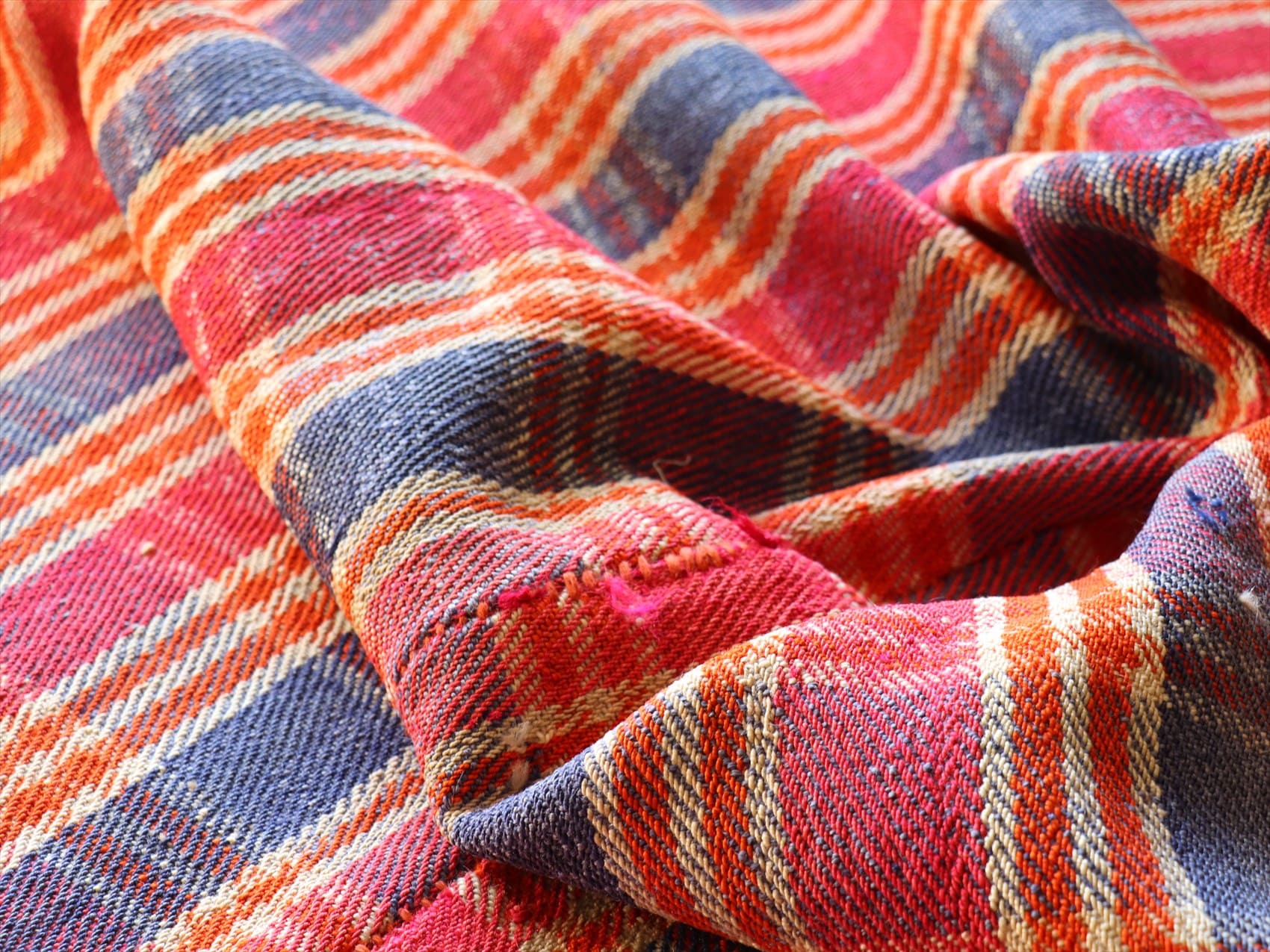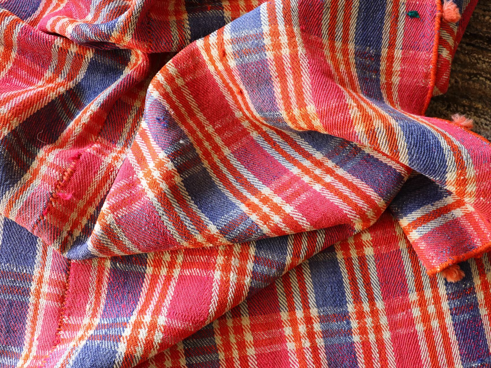 - オールドジャジム テント布166×144cm ピンク オレンジ ネイビーのチェック柄