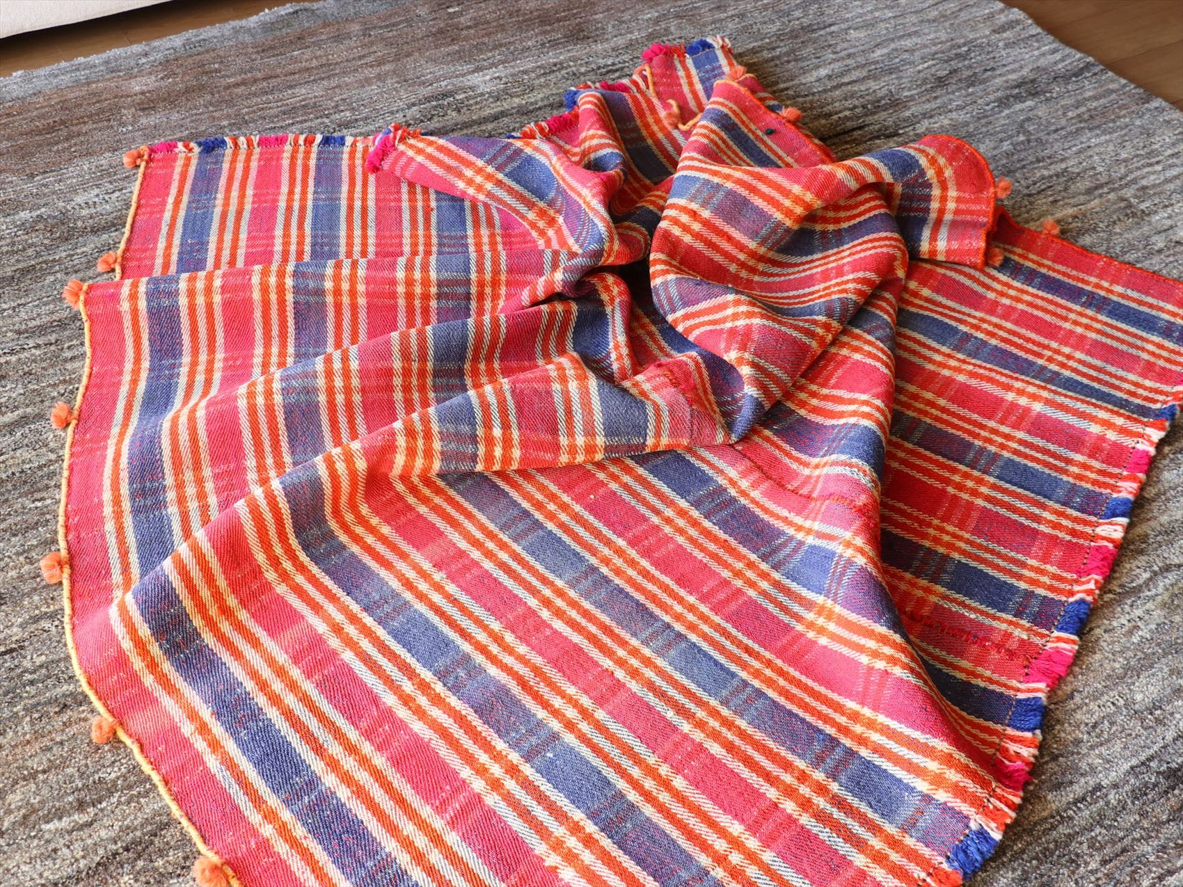 オールドジャジム テント布166×144cm ピンク オレンジ ネイビーのチェック柄