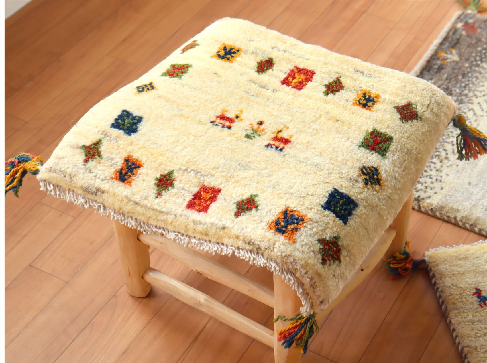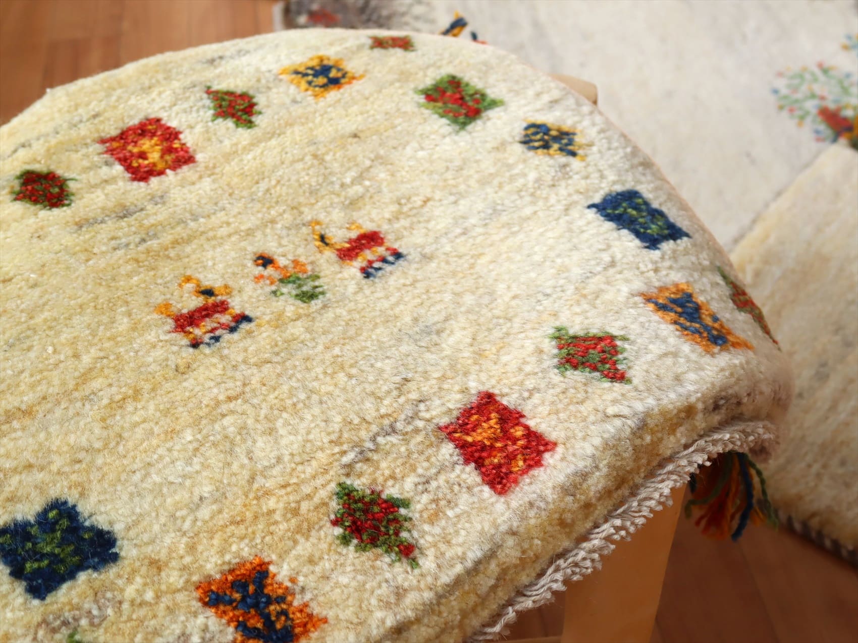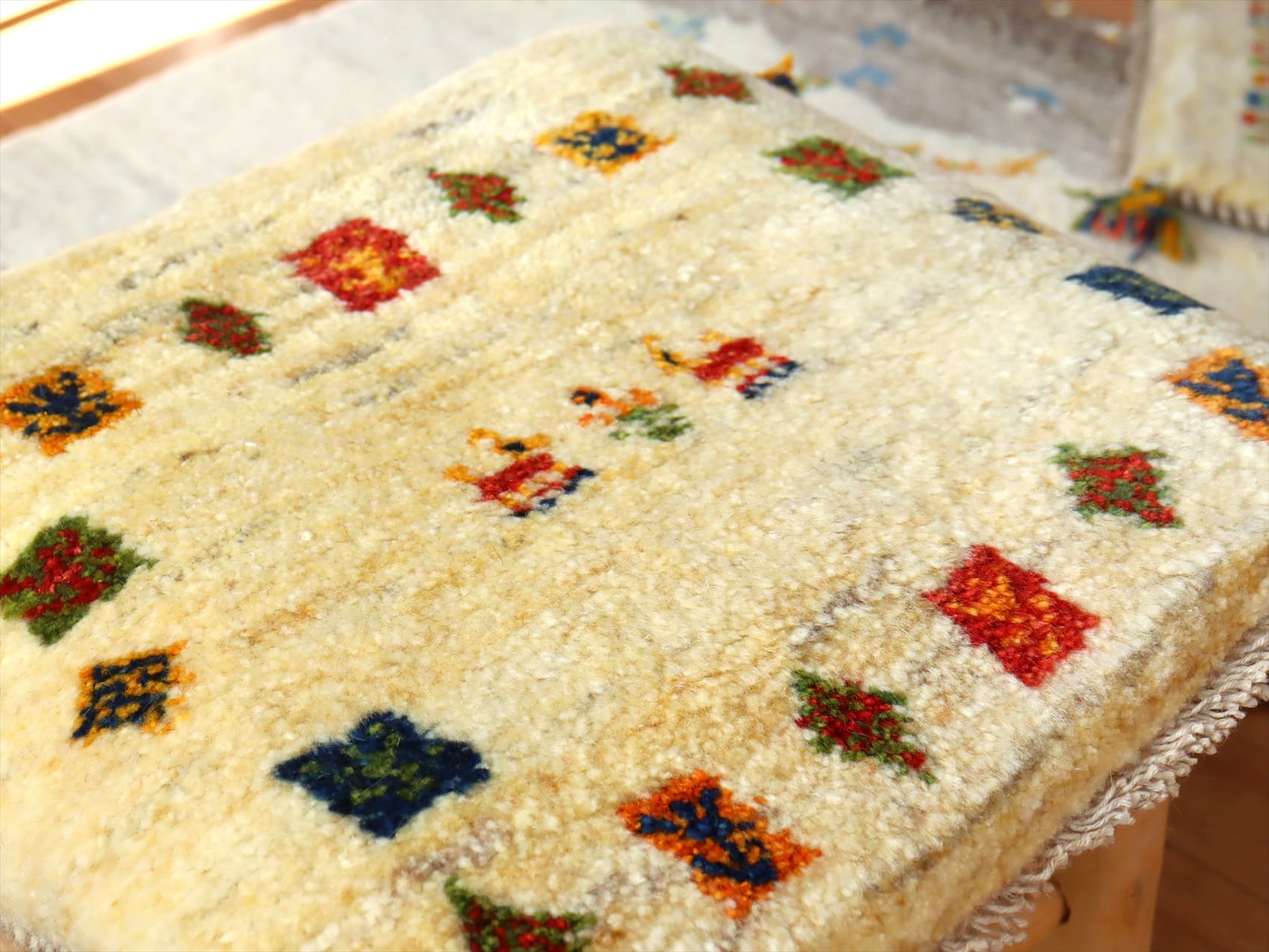 ギャッベ イラン産 ふかふか座布団41×46cm ナチュラルアイボリー