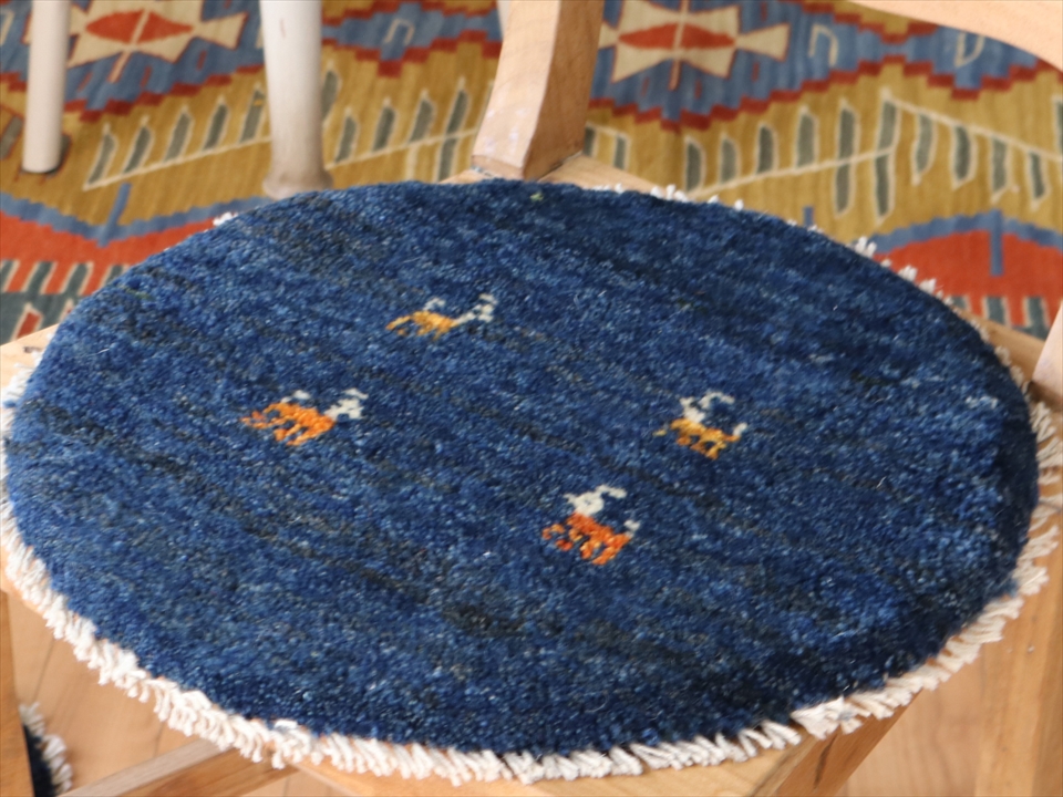 ギャッベ イラン製 丸い座布団41×41cm ネイビーブルー 円形 動物モチーフ