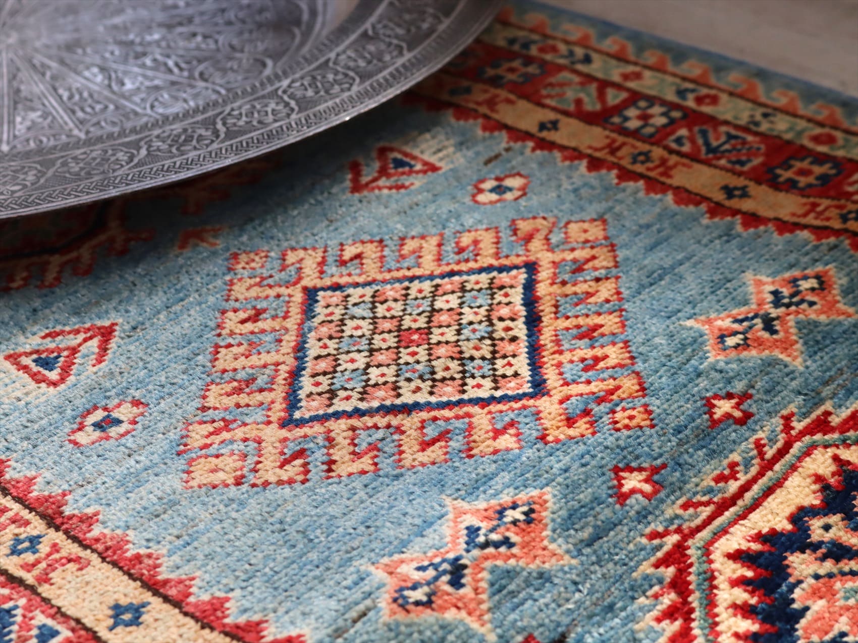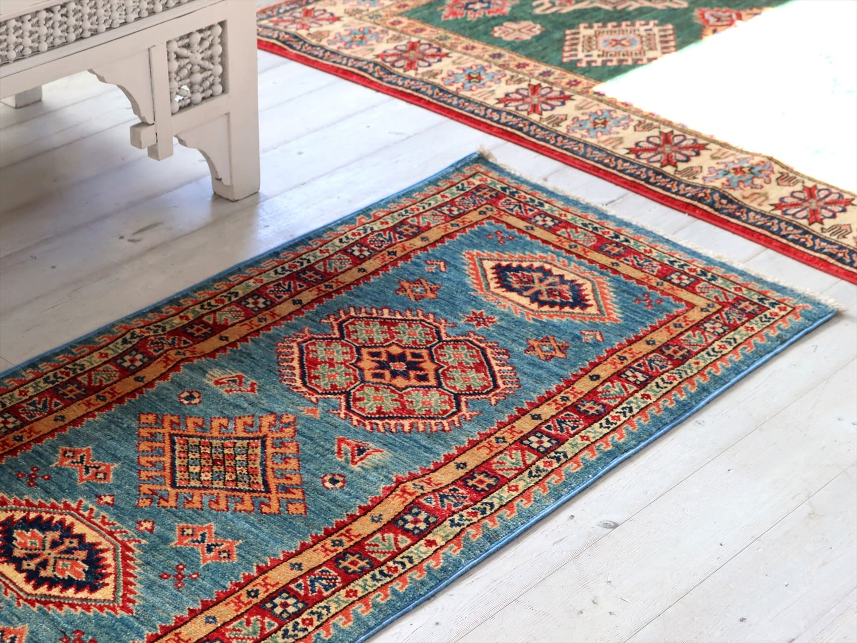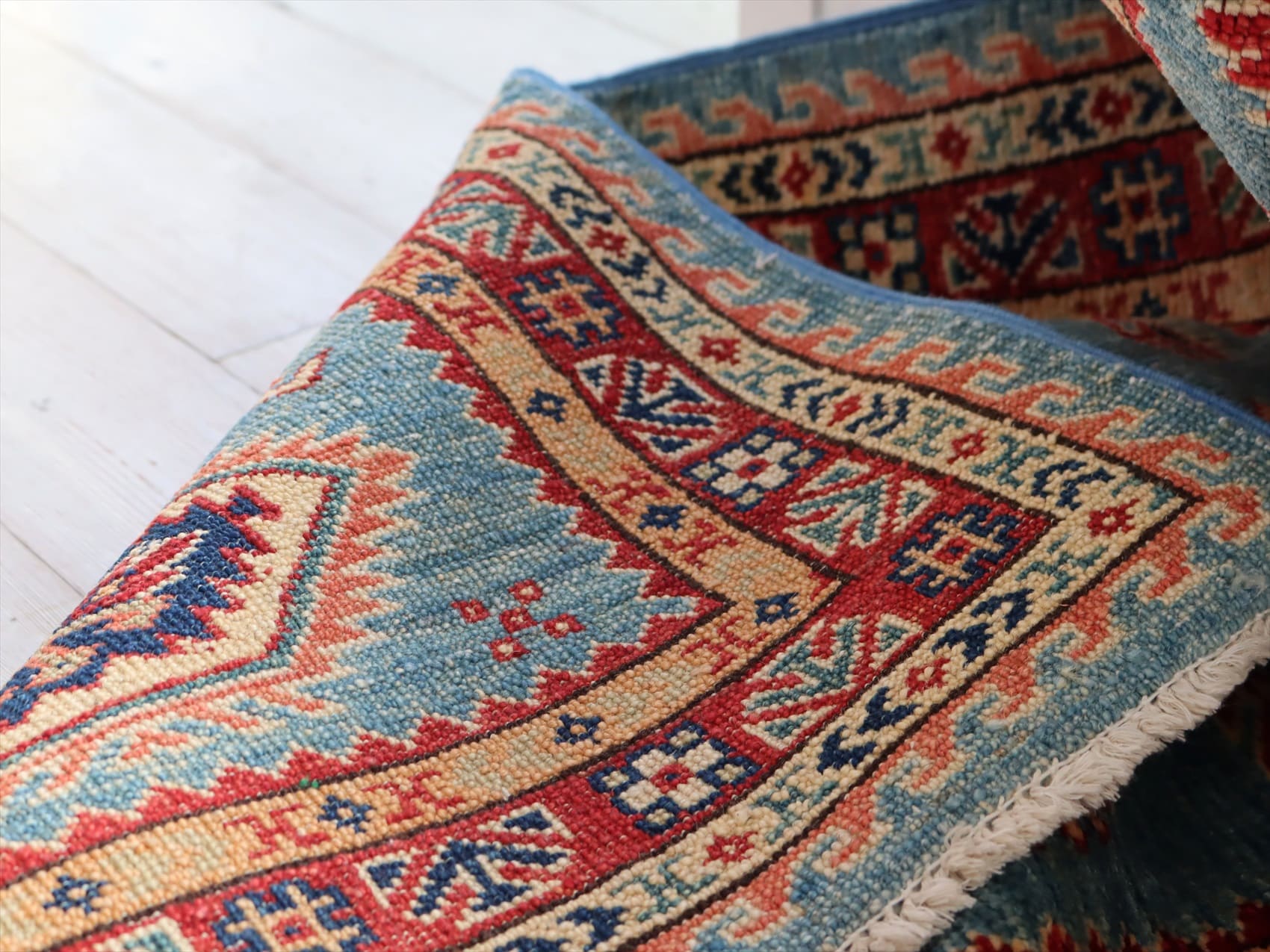 | じゅうたんコレクターの間で特に人気の高い、コーカサス地方のアンティークカーペットのデザインを再現した、リプロダクションです。トルコに近い言語を話すアゼルバイジャン地方のじゅうたんは、デザインも比較的トルコに近く、細かな幾何学模様を組み合わせたものが多く見られます。 天然の染料を使って、少し使い込んだような色ムラのあるアンティーク風に織られています。 |