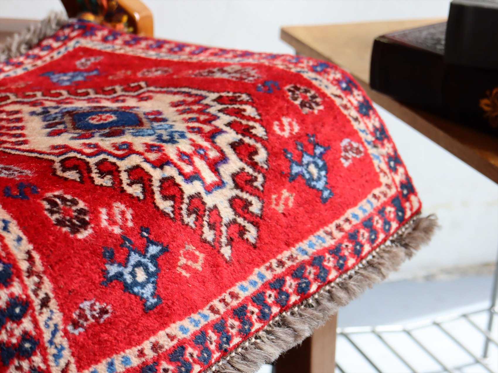 ヤラメ・手織りラグ ミニサイズ/トライバルラグ37×40cm レッド