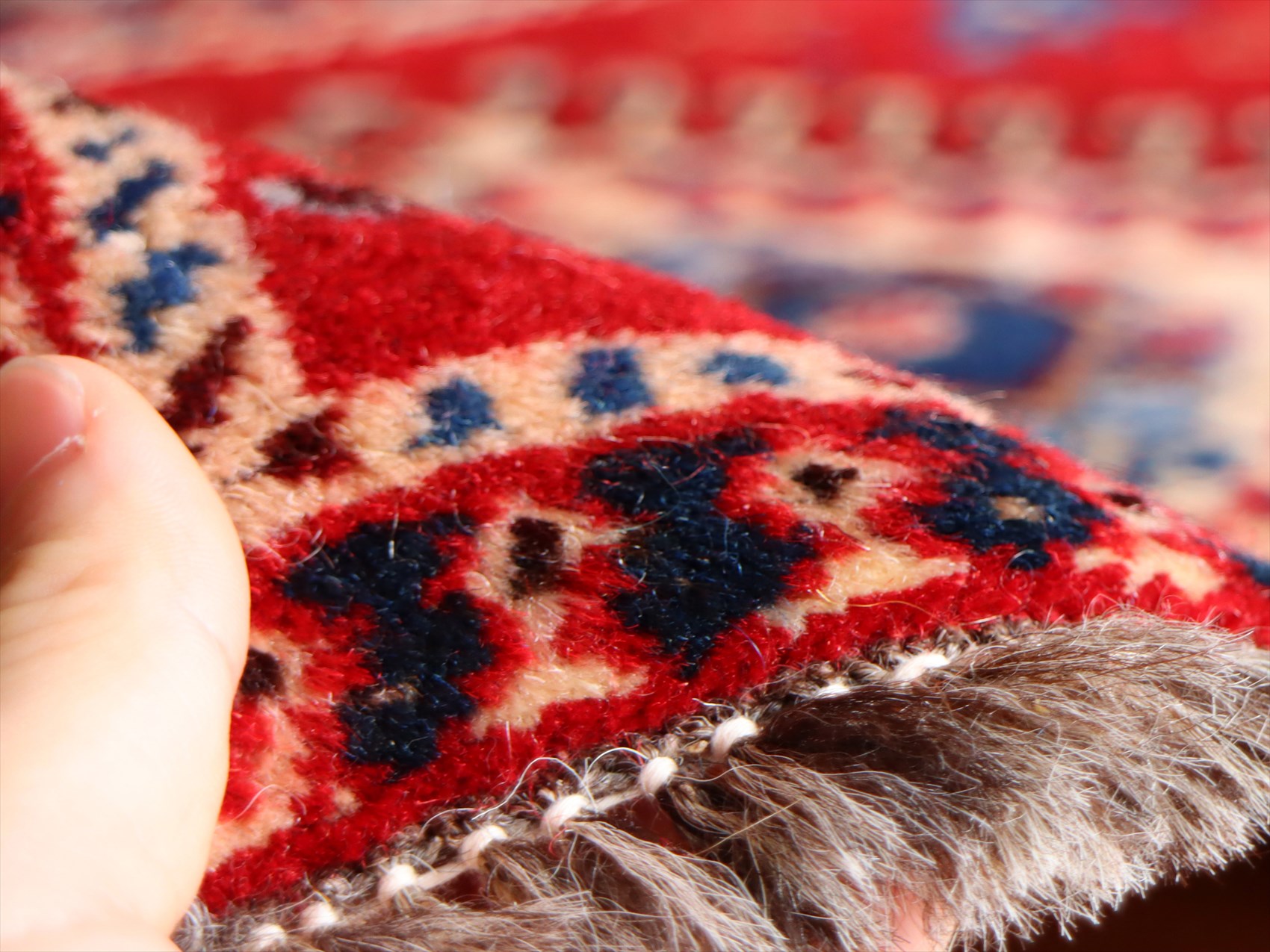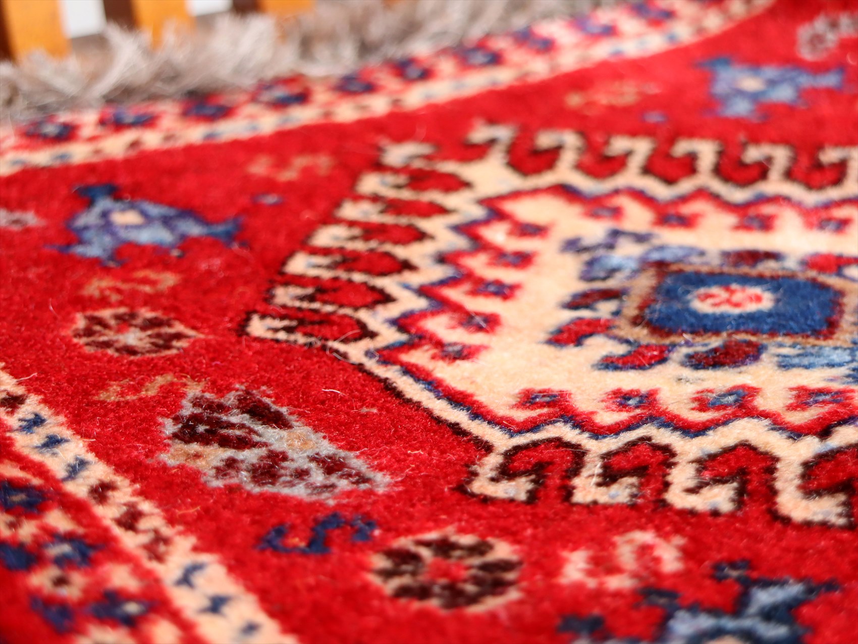 パイルは短めに刈り込まれています。ふかふかというほどの厚みはなく、すっきりした薄手のラグです。 |
