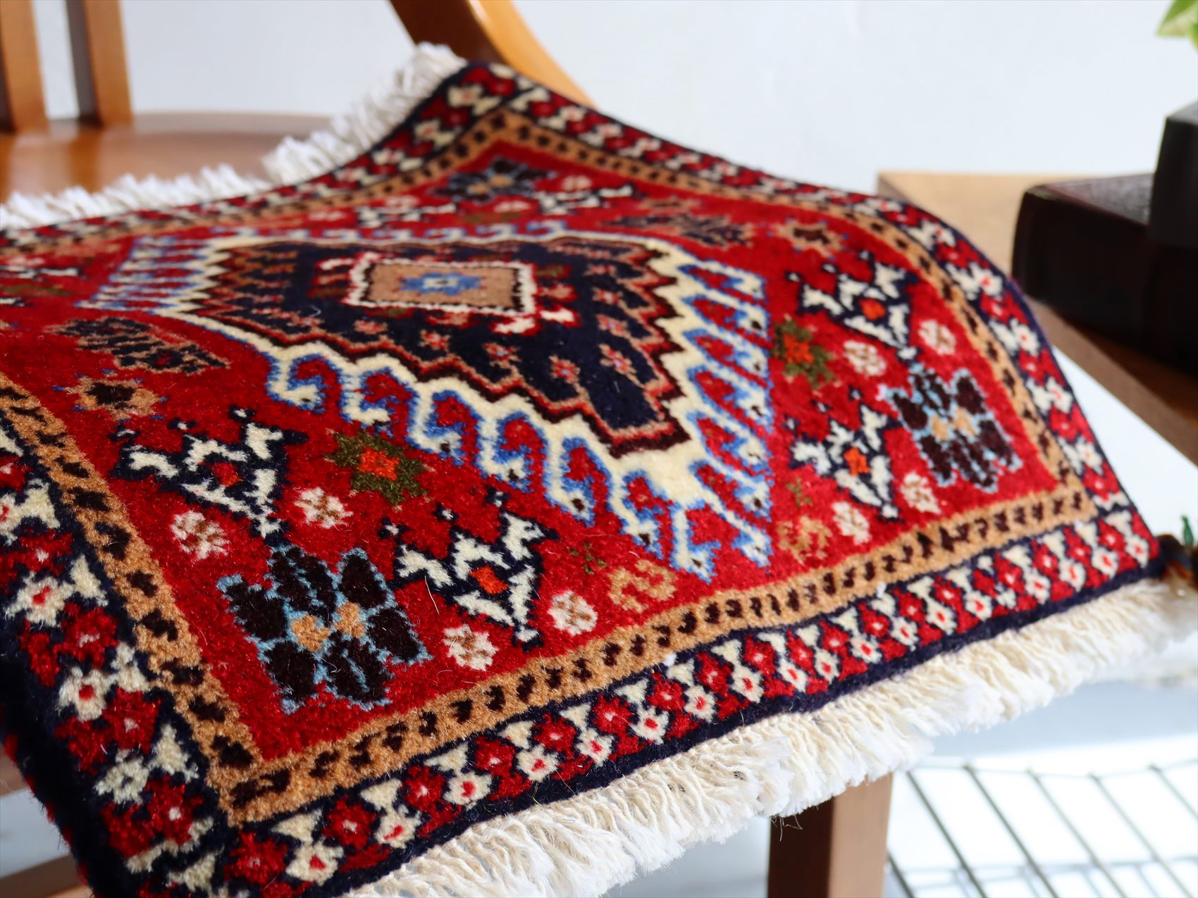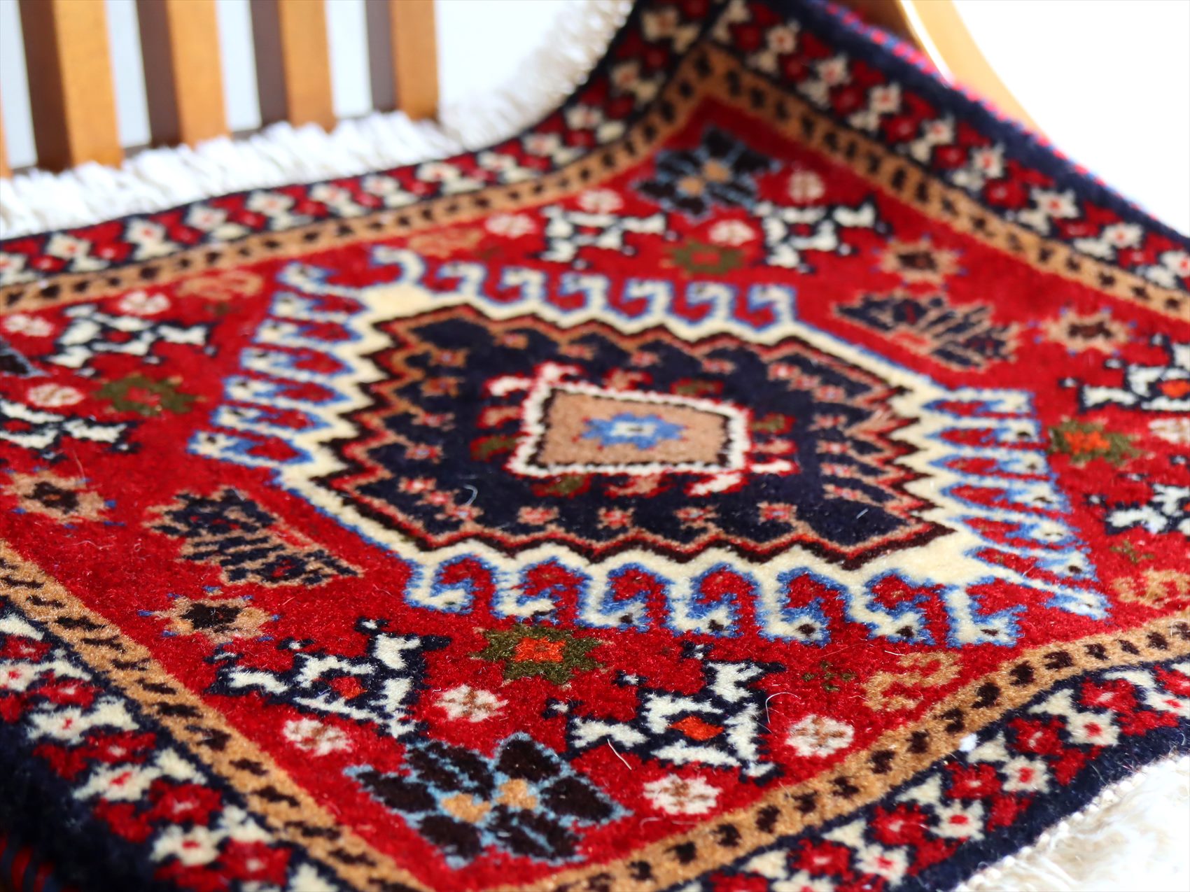 ヤラメ・手織りラグ ミニサイズ/トライバルラグ38×42cm レッド
