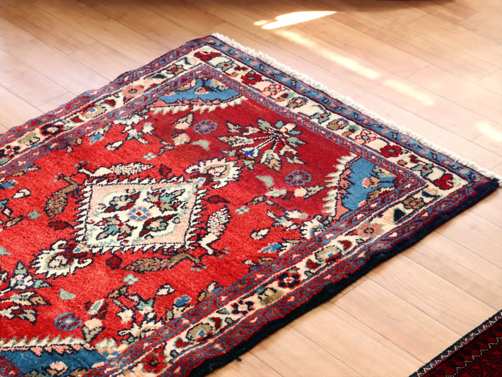 Key:Tribal rug, Old carpet, Red carpet, Area rug, hand knotted, トライバルラグ, 部族絨毯, 部族じゅうたん, 手織りラグ, 手織り絨毯, オールドカーペット, オールドラグ, ペルシャ絨毯, BOHO, ボヘミアンスタイル