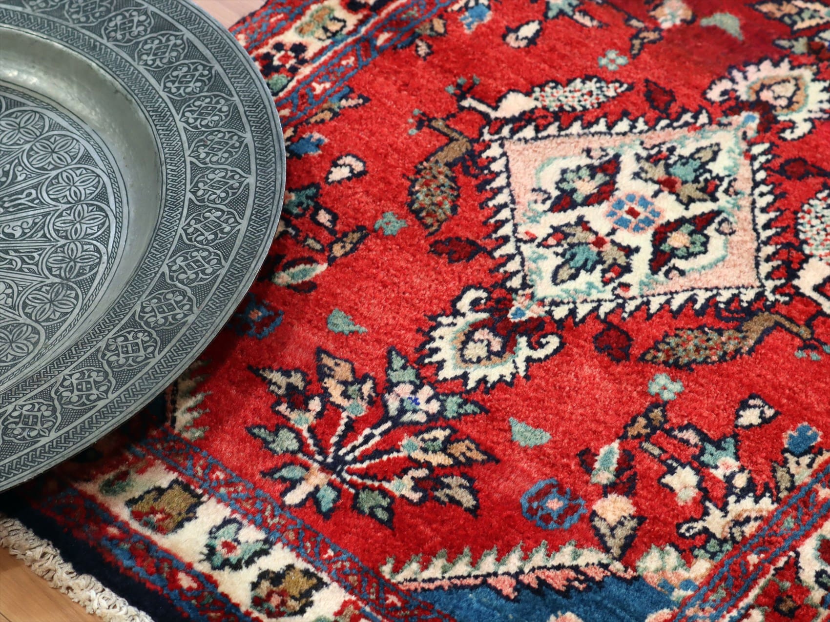 トライバルラグ ハマダン90×68cm 鳥と小花のモチーフ