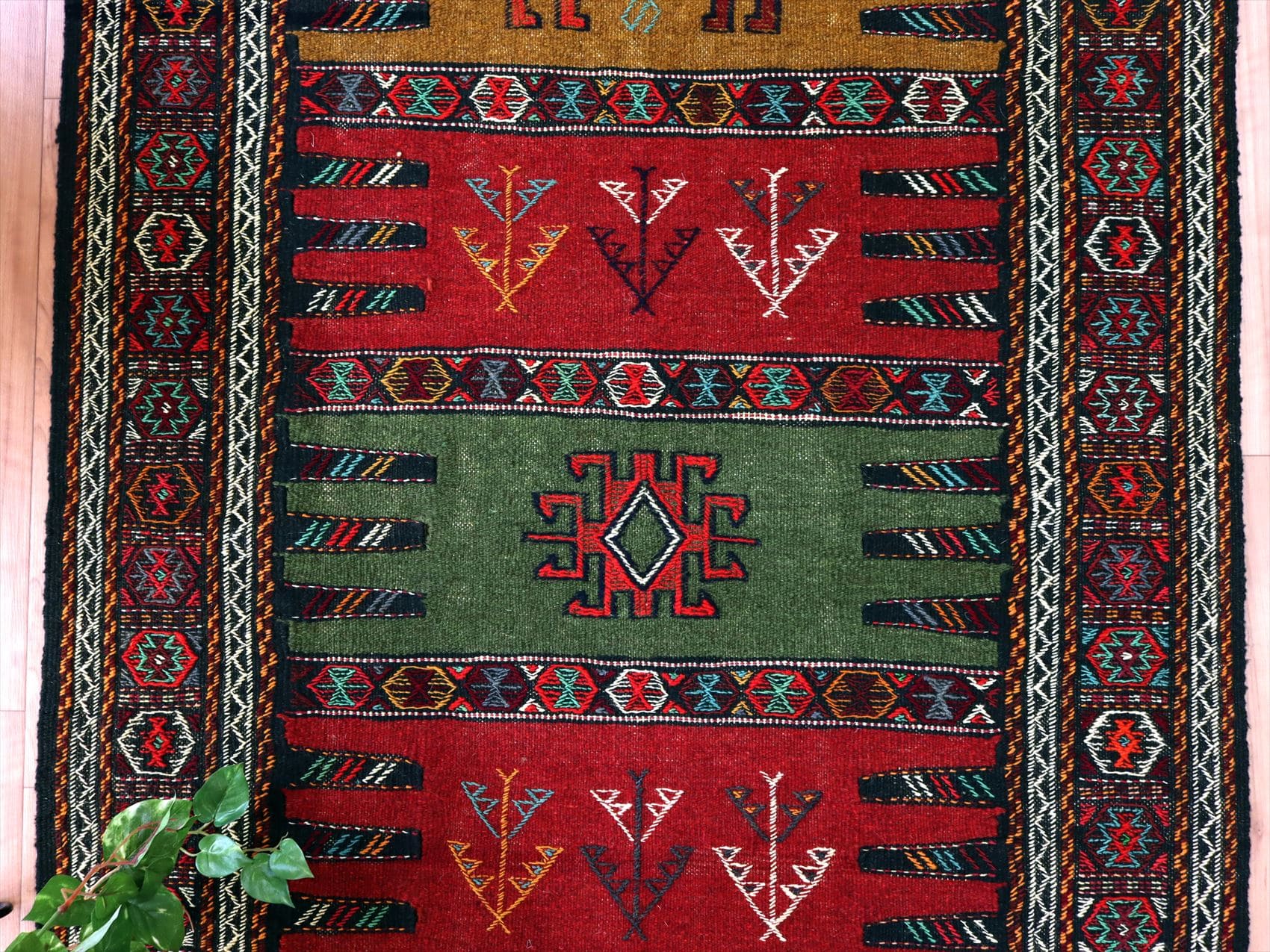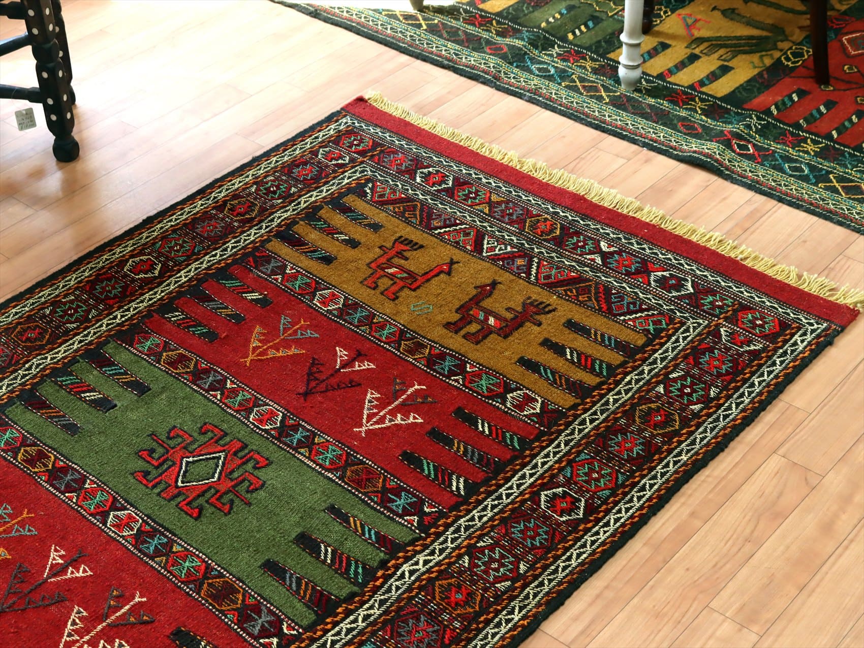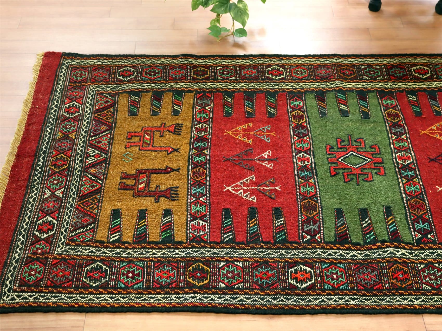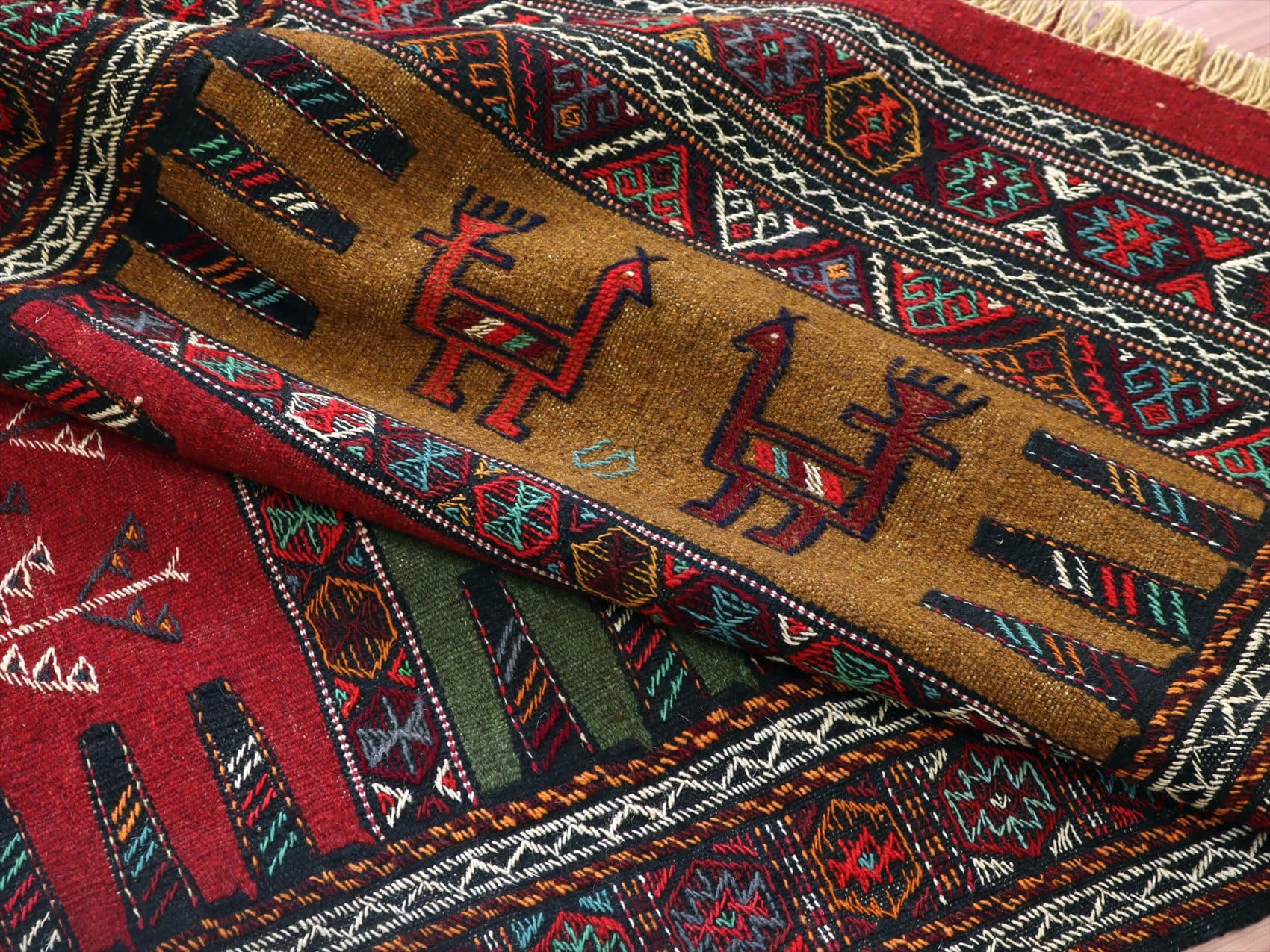 東イランの素朴な手織りキリム グチャン172×102cm 動物と植物