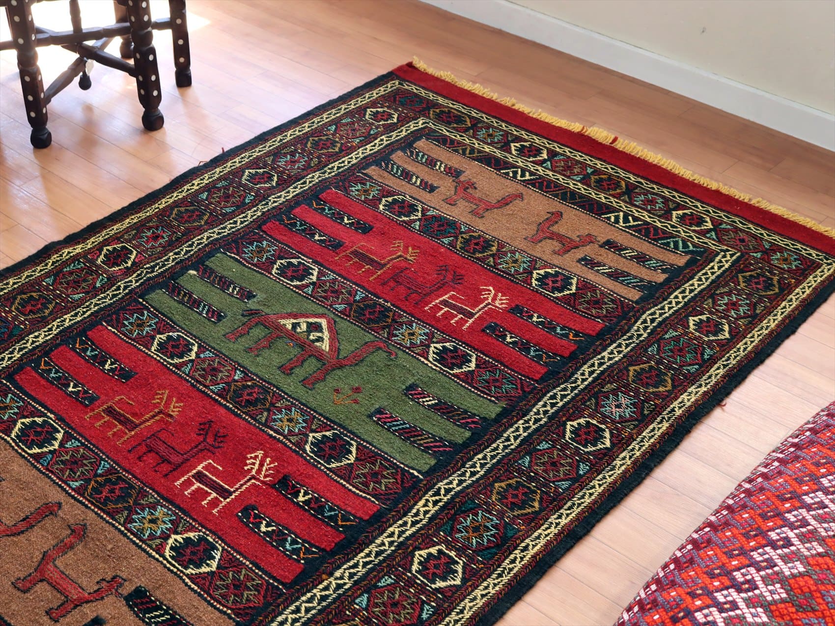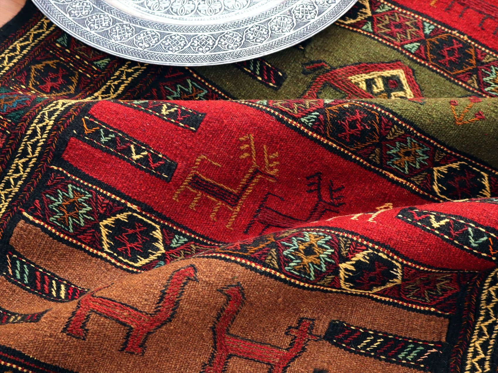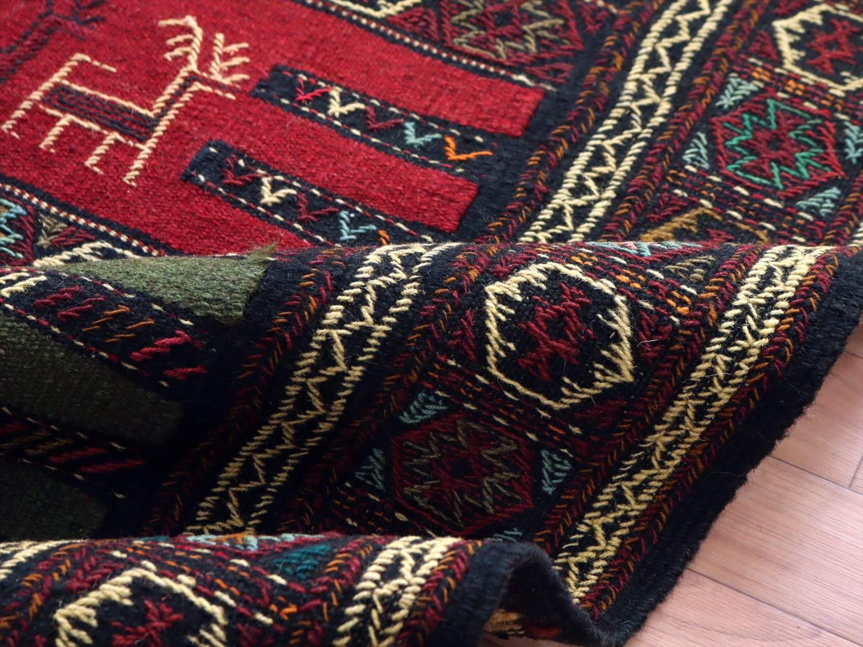 グチャン イランの手織りキリム185×113cm ラクダとシカのモチーフ