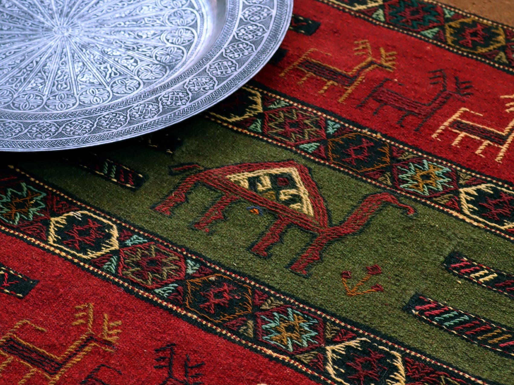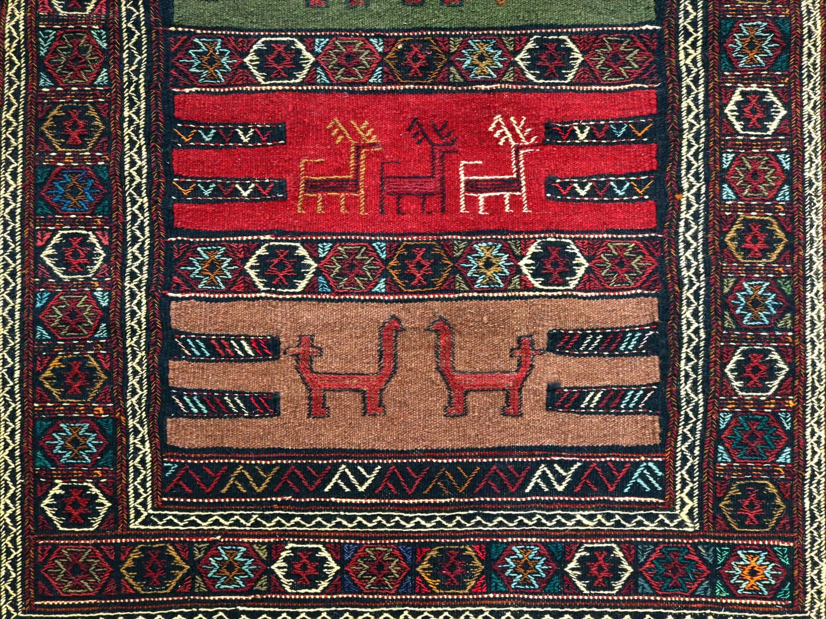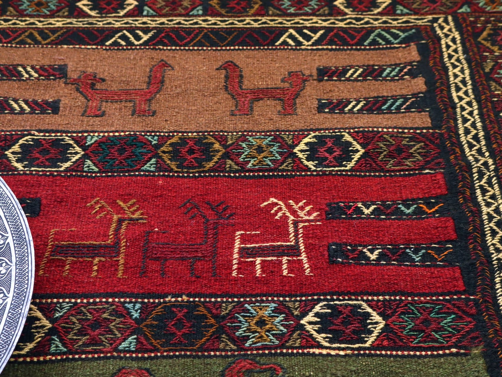 グチャン イランの手織りキリム185×113cm ラクダとシカのモチーフ